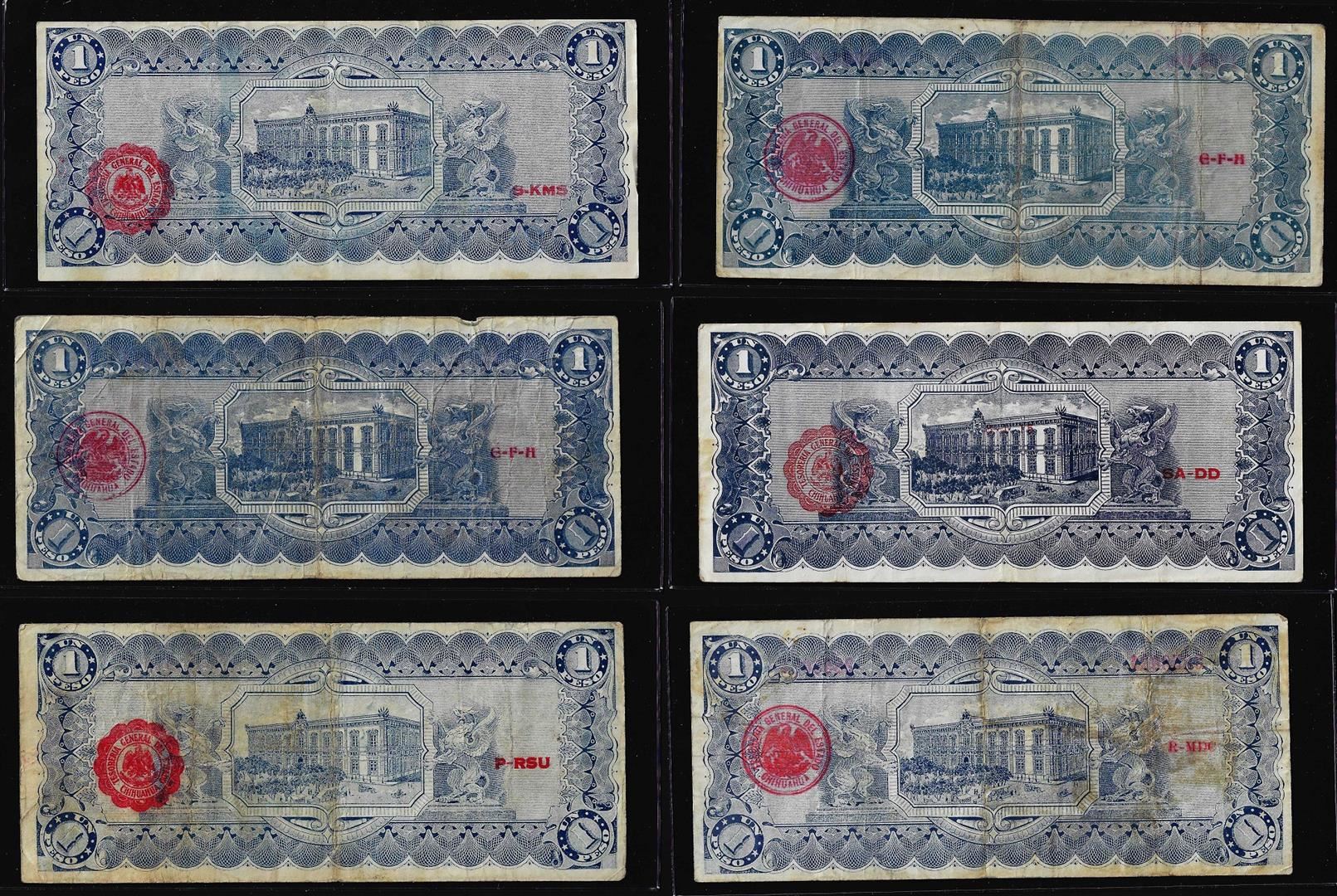 Lot of (6) 1915 1 Peso Mexico Revolutionary State of Chihuahua Notes