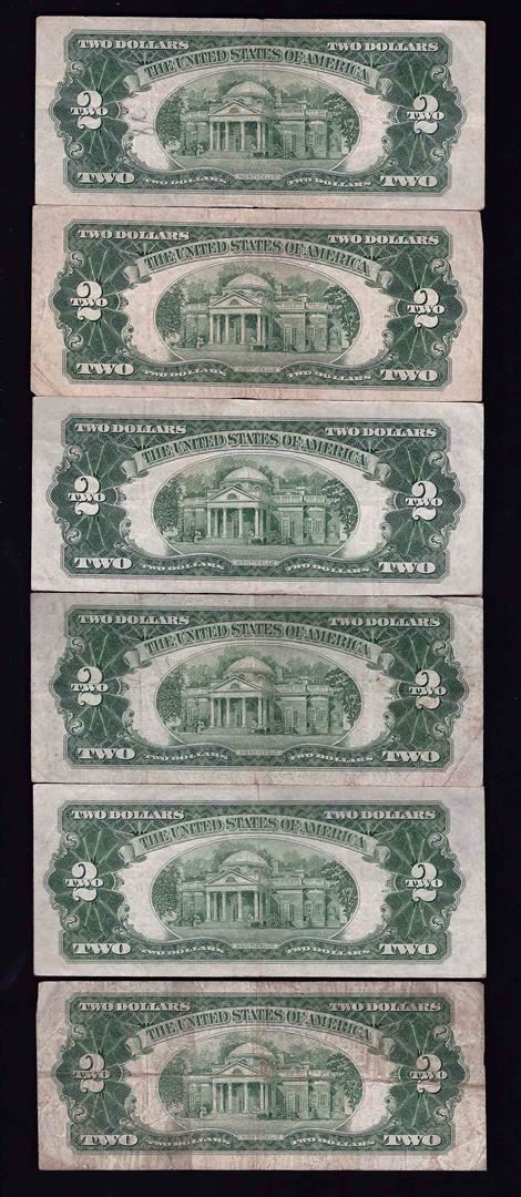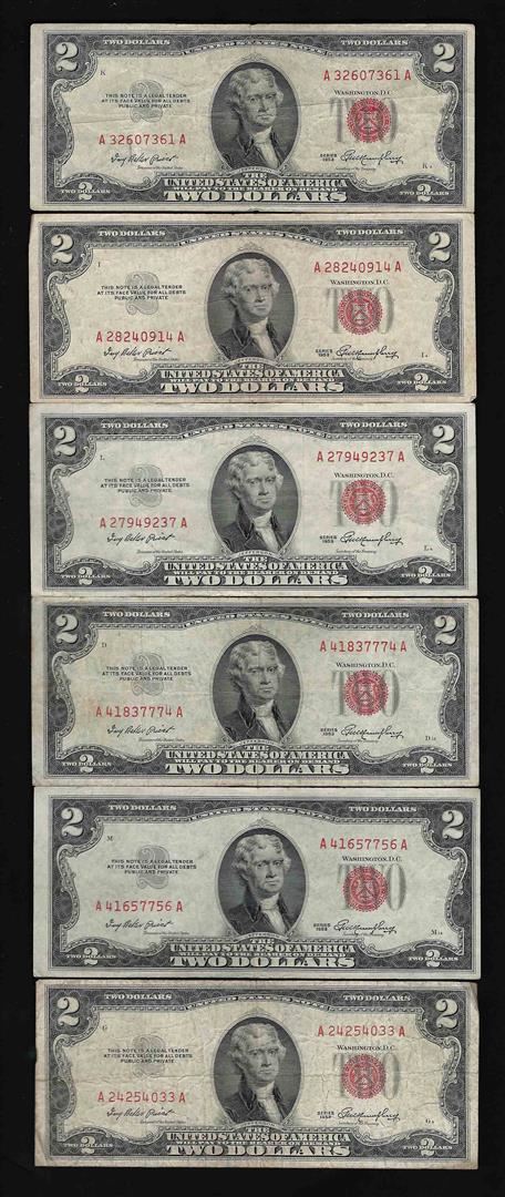 One Lot of (6) 1953 $2 Legal Tender Notes.