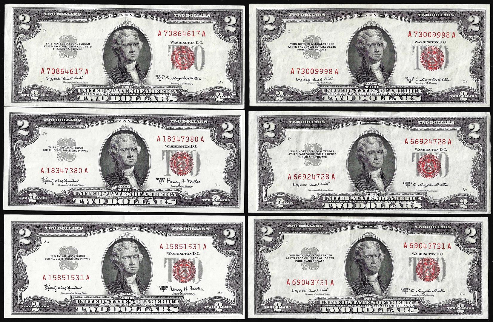 One Lot of (6) 1953B/1963A $2 Legal Tender Notes.