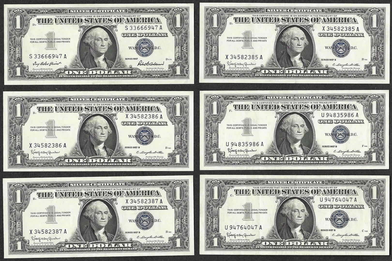 One Lot of (6) 1957 $1 Silver Certificate Notes.