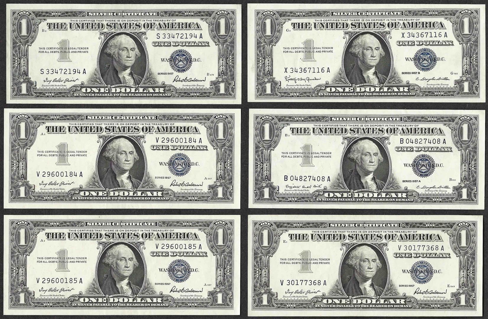 One Lot of (6) 1957 $1 Silver Certificate Notes.
