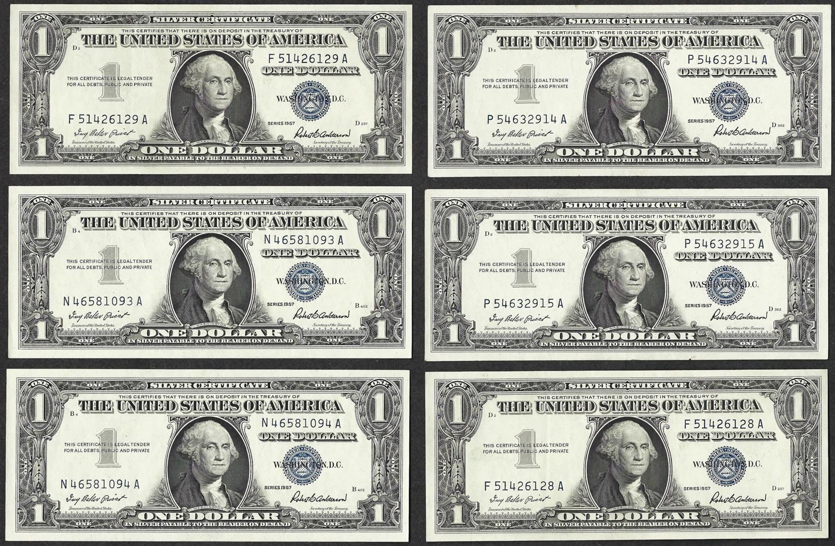 One Lot of (6) 1957 $1 Silver Certificate Notes.