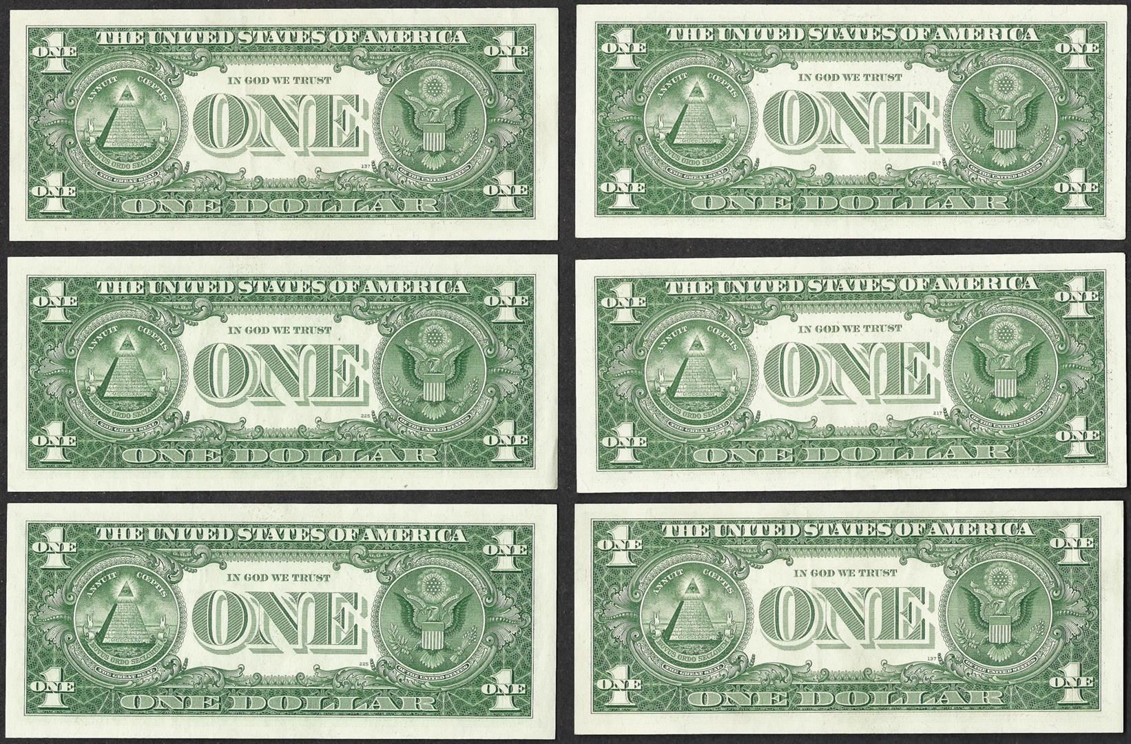 One Lot of (6) 1957 $1 Silver Certificate Notes.