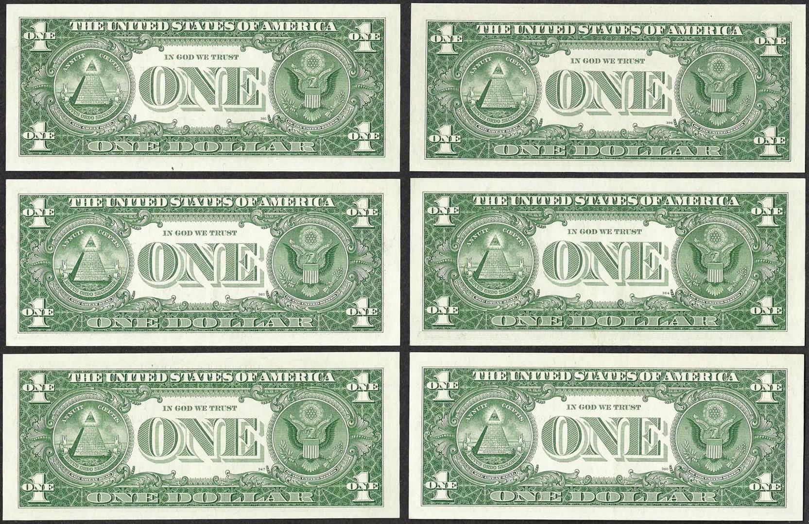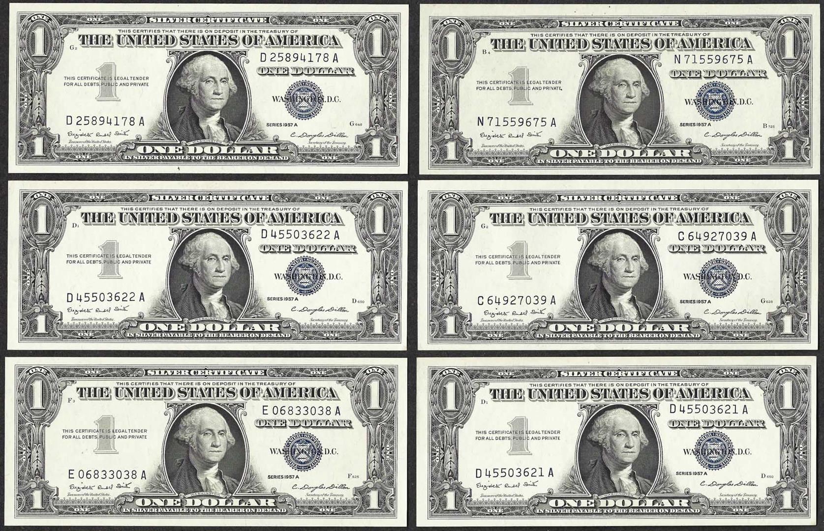 One Lot of (6) 1957A $1 Silver Certificate Notes Uncirculated.