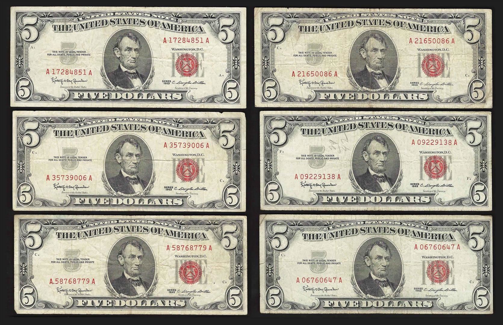 One Lot of (6) 1963 $5 Legal Tender Notes.