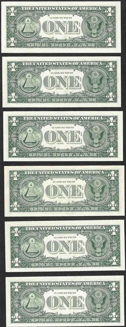 One Lot of (6) 1969 $1 Federal Reserve Notes.