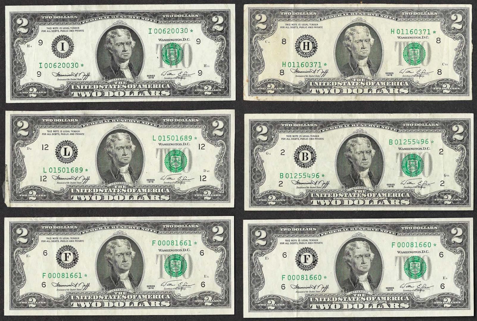 One Lot of (6) 1976 $2 Federal Reserve STAR Notes.