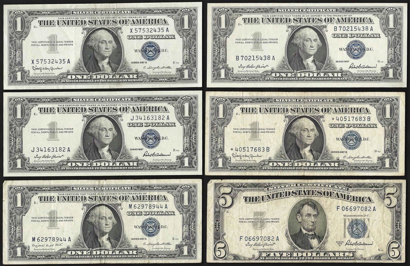 One Lot of (6) Assorted 1953/1957 Silver Certificate Notes.