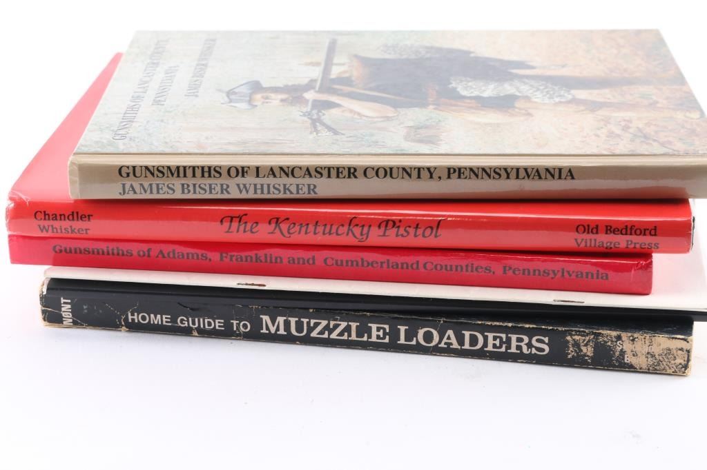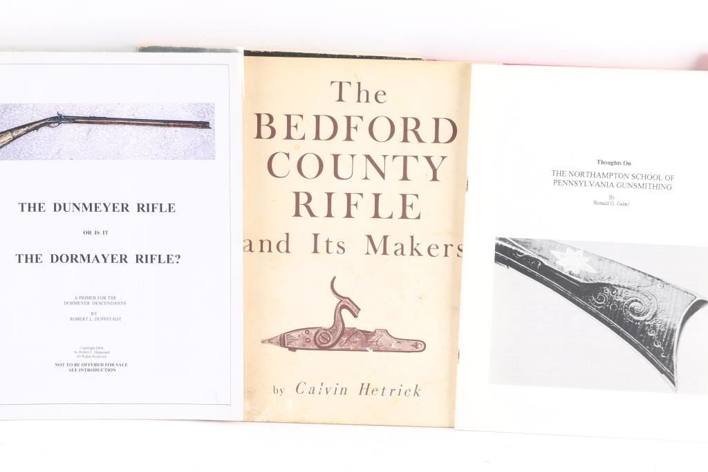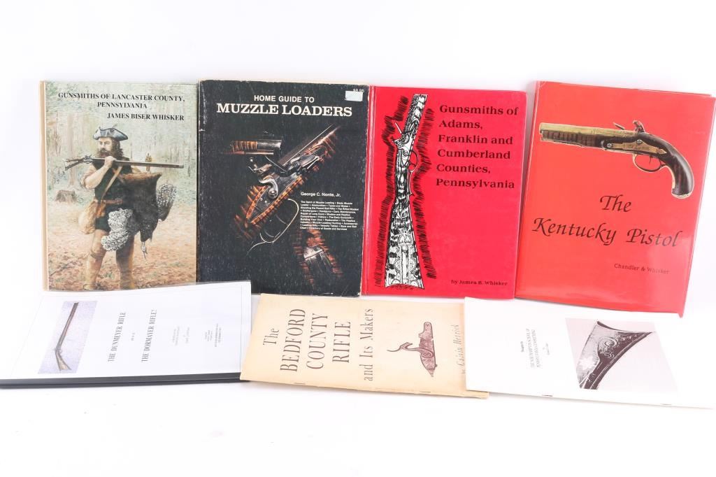 Includes: The Kentucky Pistol (1st Ed. 1994) by Chandler & Whisker; excellent condition; Gunsmiths of Adams, Franklin and Cumberland Counties, Pennsylvania by James B. Whisker; good condition; Gunsmiths of Lancaster County, Pennsylvania by James Biser Whisker; Home Guide to Muzzle Loaders by George C. Nonte Jr.; The Bedford County Rifle and its Makers by Calvin Hetrick; The Dunmeyer Rifle or is it The Dormayer Rifle? by Robert L. Duppstadt; Thoughts on the Northampton School of Pennsylvania Gunsmithing by Ronald G. Gabel.