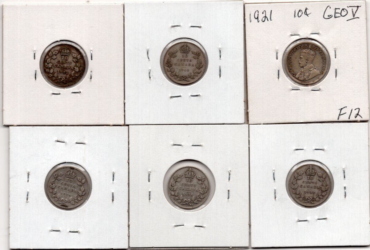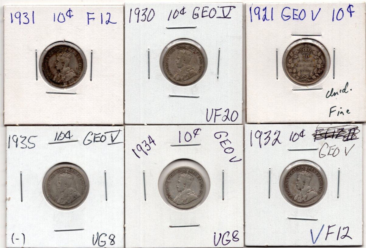 1921, 1930, 1931, 1932, 1934, 1935. Grades on holders may not be accurate.