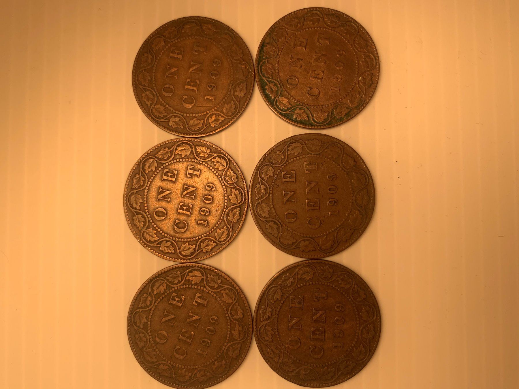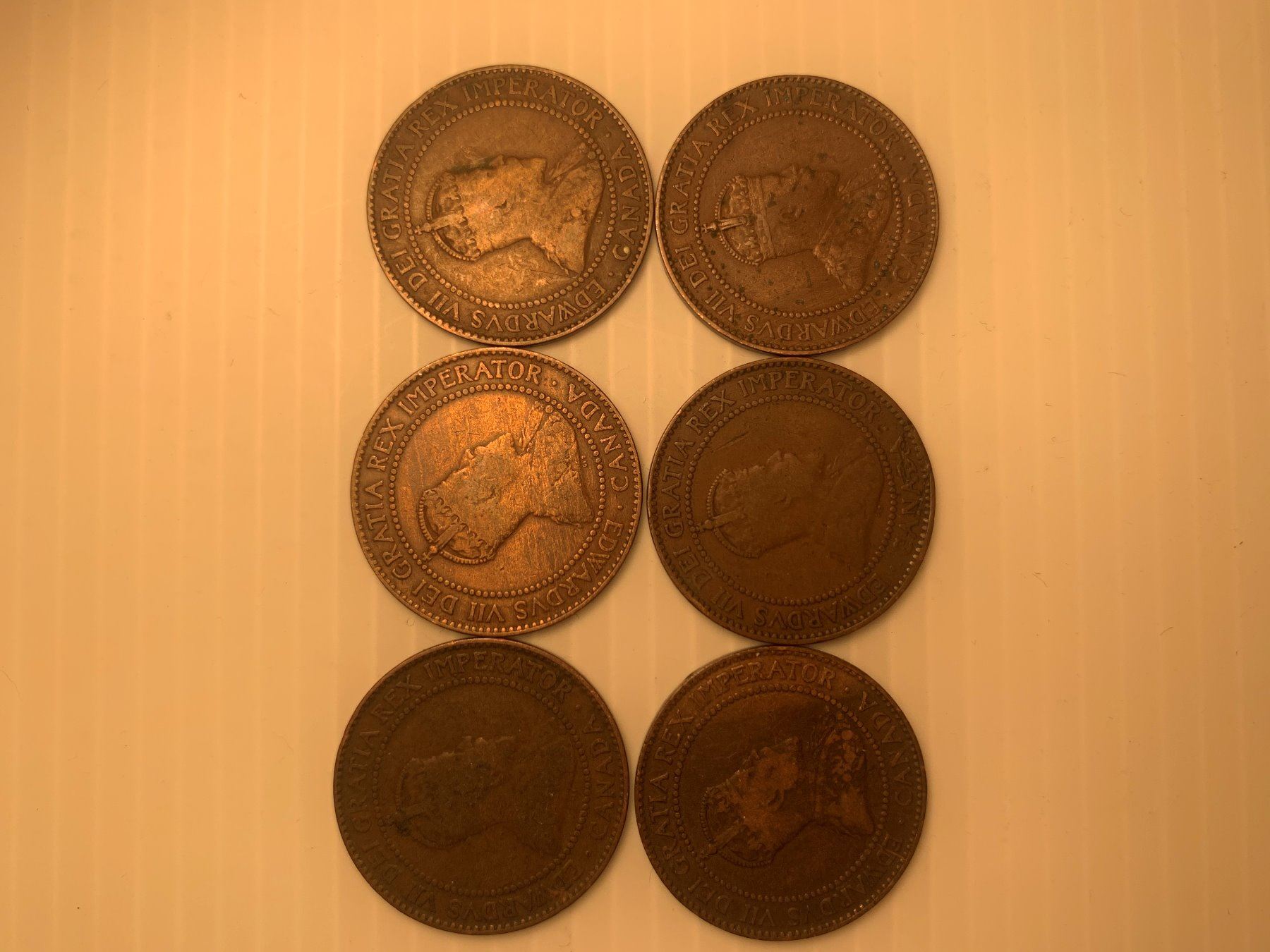 Lot of 6 Canada One Cent 1 Penny King Edward VII 1909