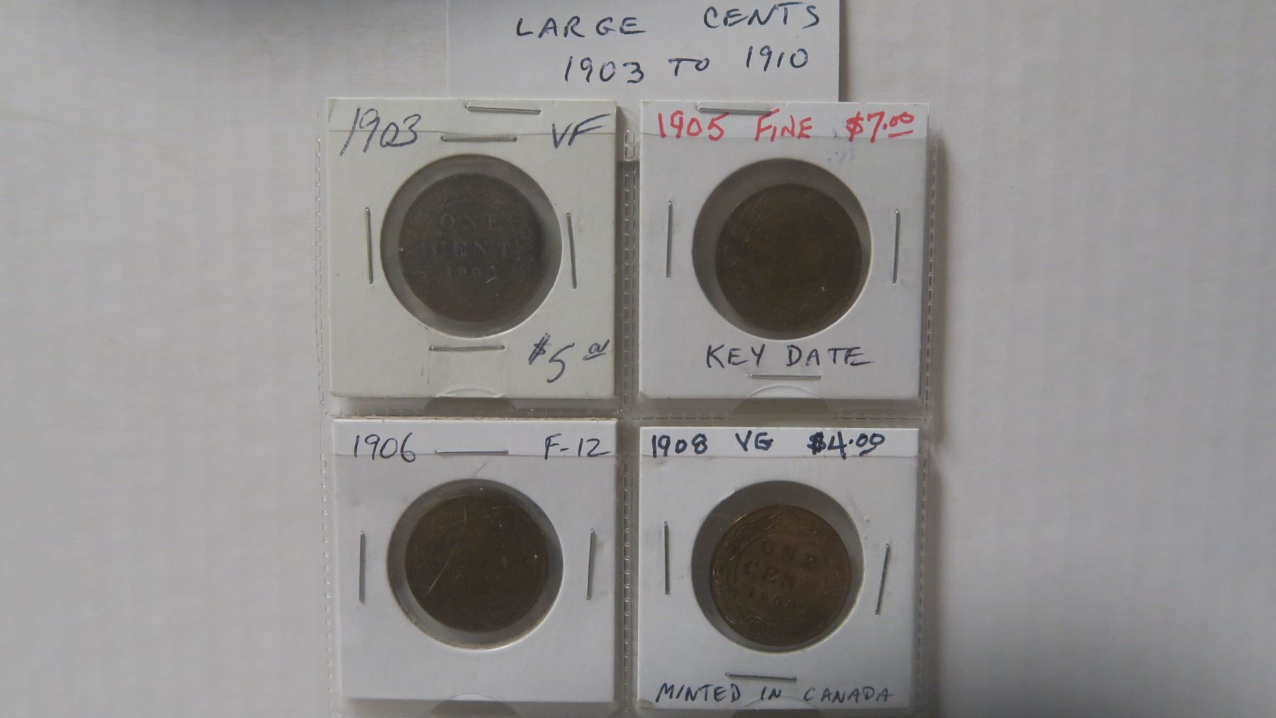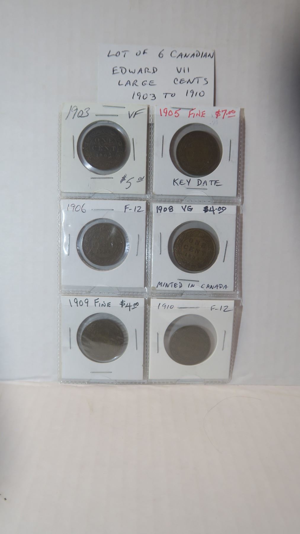 Lot of 6 Canadian Edward VII Large Cents 1903 – 1910. Includes 1903, 1905 (Key Date), 1906, 1908, 19