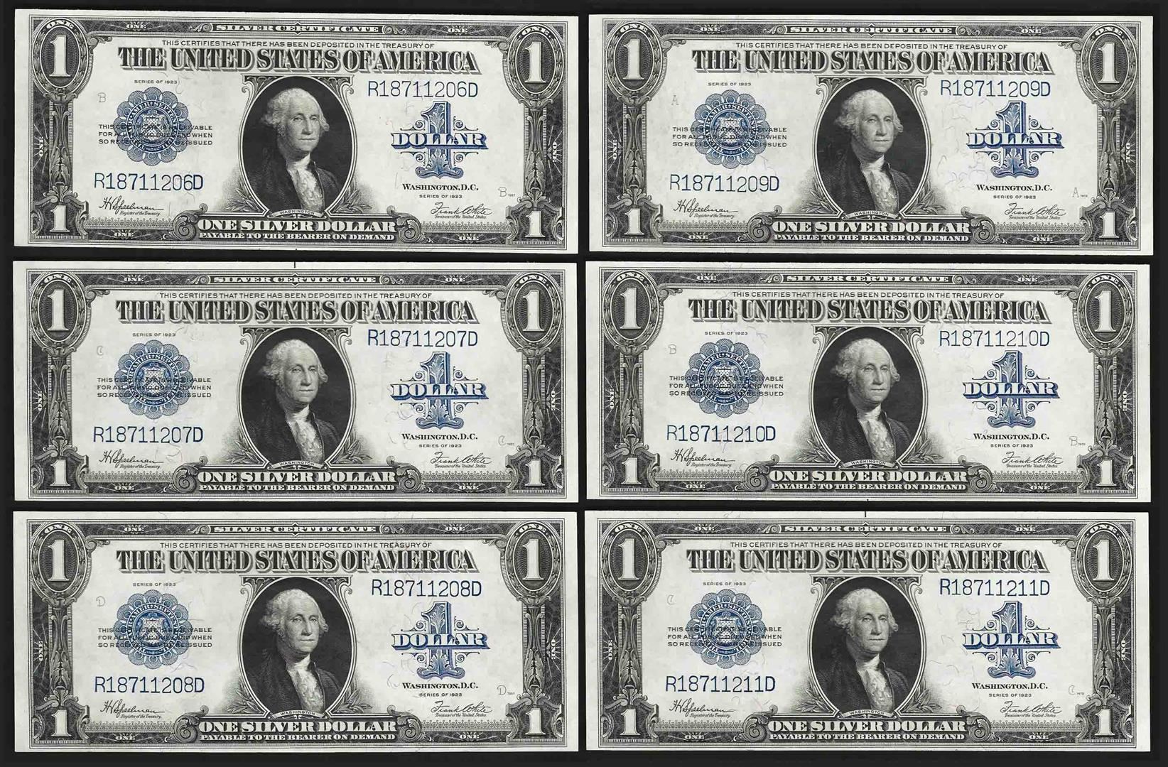 One Lot of (6) Consecutive 1923 $1 Silver Certificate Notes Uncirculated.