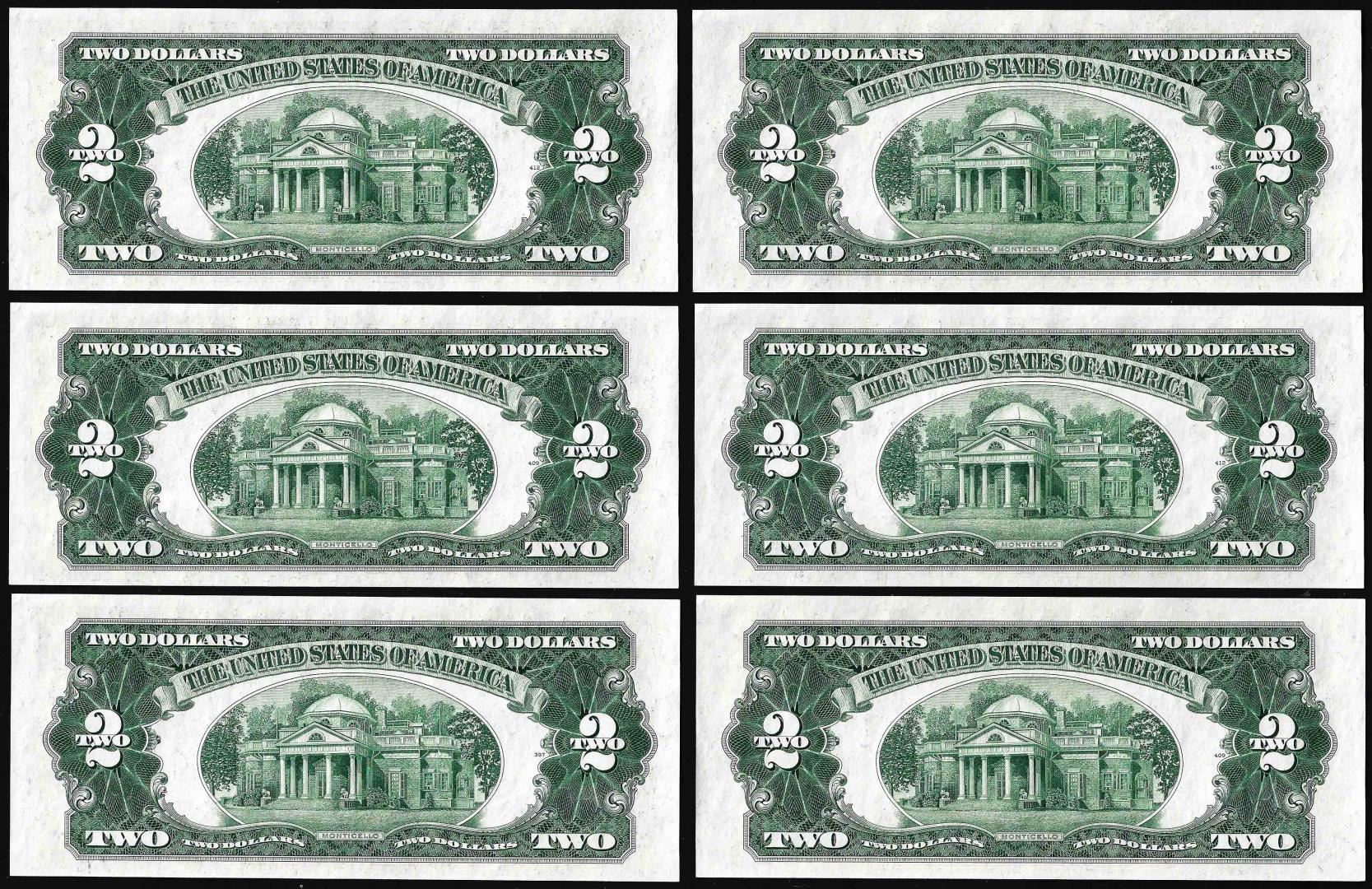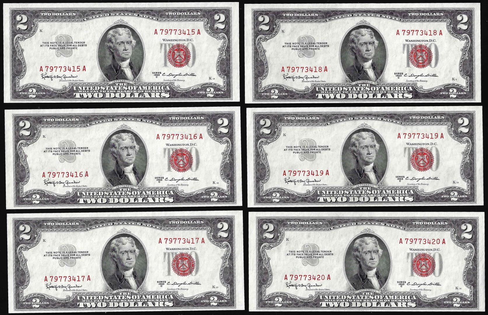 Lot of (6) Consecutive 1953C $2 Legal Tender Notes Uncirculated