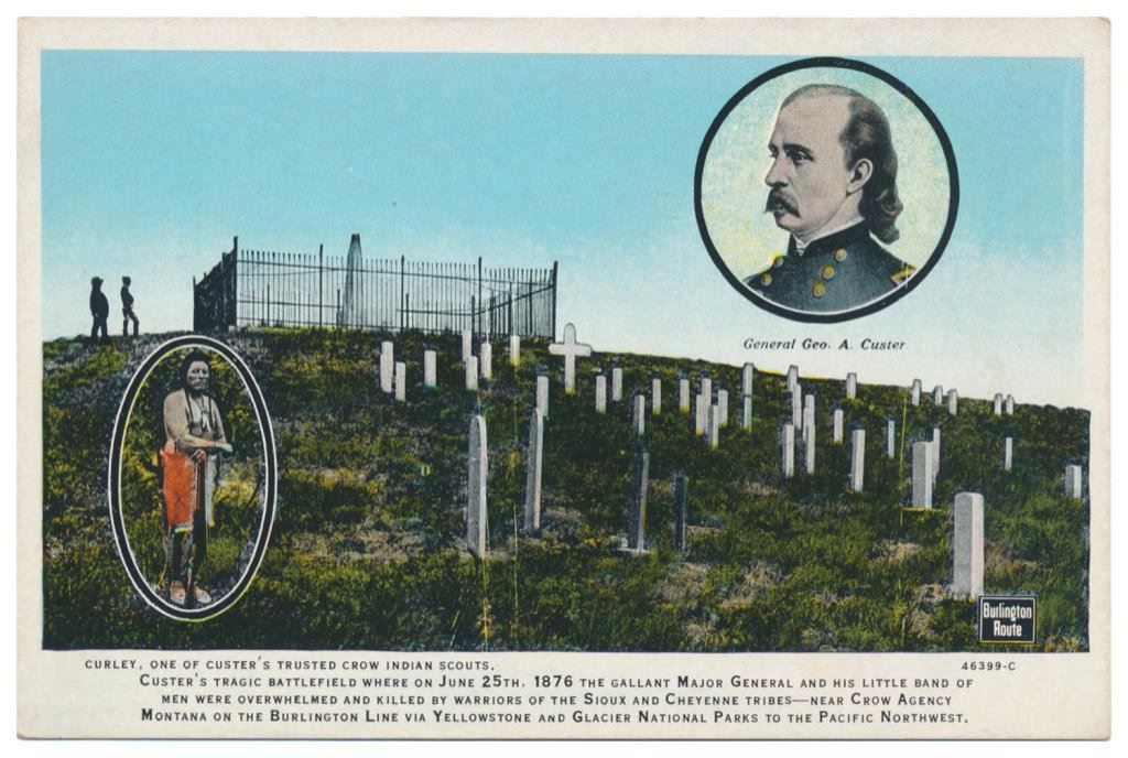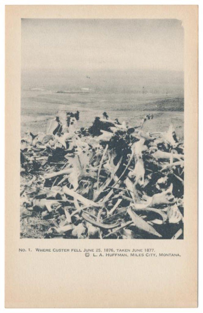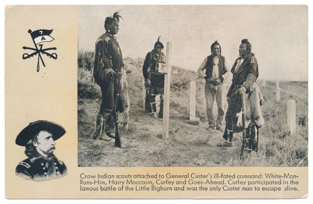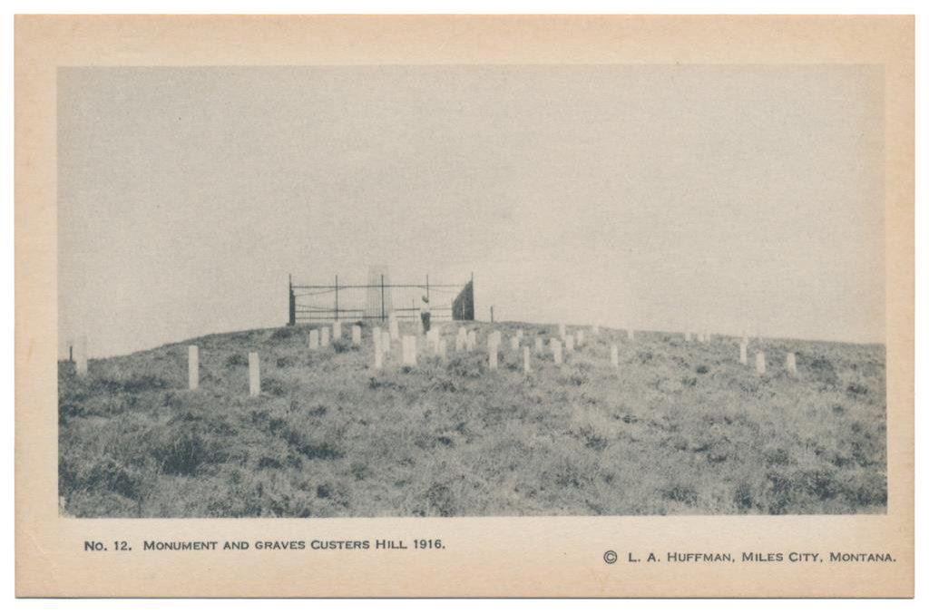 Lot of 6 General George Armstrong Custer and Little Bighorn battle photo postcards including three circa 1916 of the battlefield by noted photographer L.A. Huffman, Miles City, Montana. Also included are an early postcard showing Crow Indian Scouts at the battlefield grave site, a later photo of the grave site with insets of Custer and Curley and a later postcard of six Sioux Warriors involved in the Battle. A great lot for the collector of Custer-related ephemera. Est.: $75-$125.