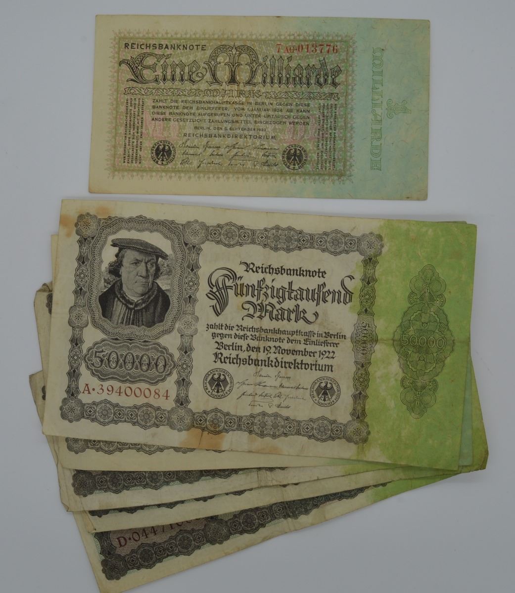 Value / Valeur: 1,000,000,000 Mark / 50,000 Mark x5