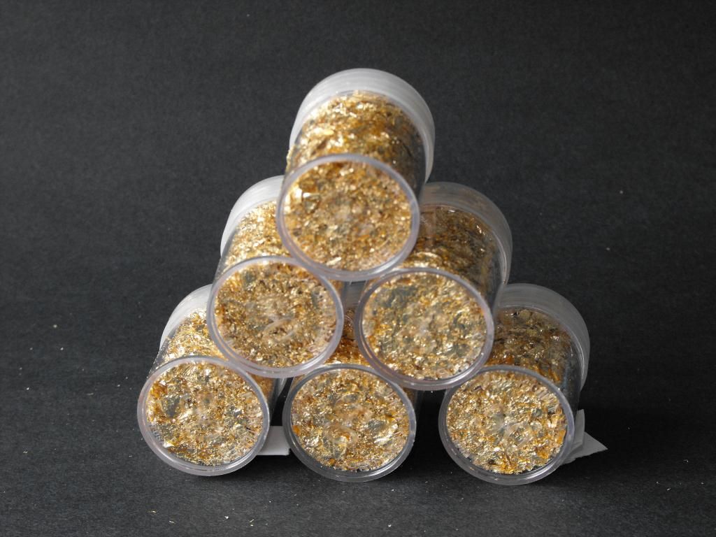 Lot of (6) Gold Leaf Flake Bottles- Non Bullion