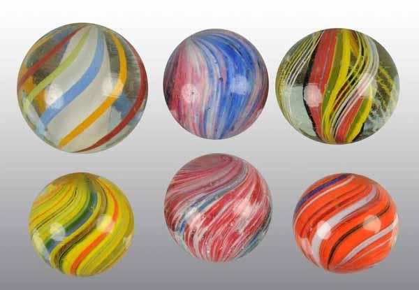 Description Includes two German swirls, two Joseph swirls, and two onionskins, one with mica. Condition (9.5+). Size Largest: 1" Dia.