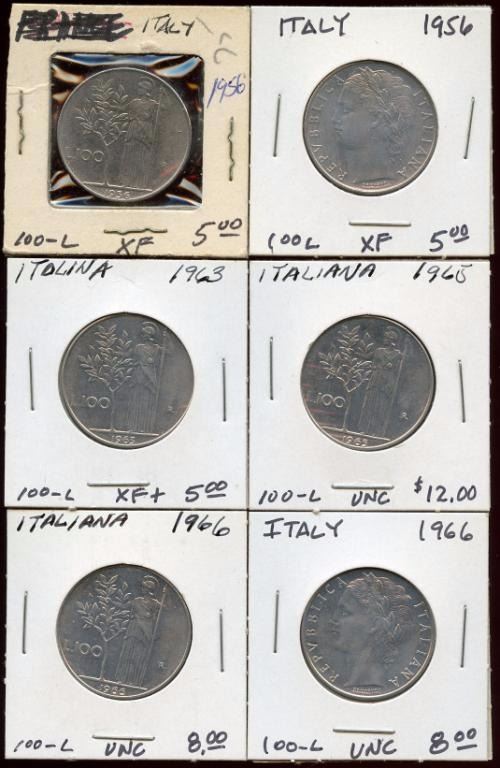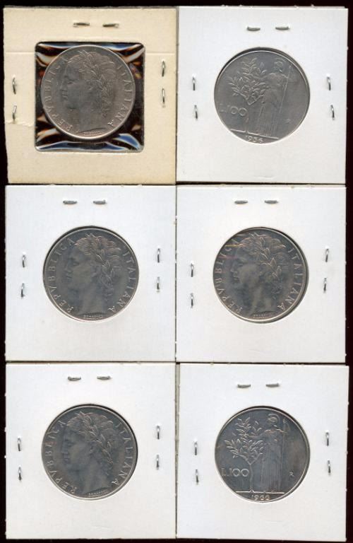 Lot of 6 Italy 100 Lire Coin, 1956-1966