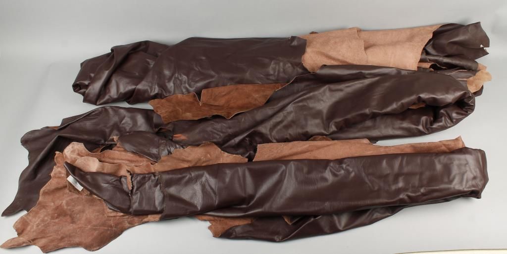 Brown leather hides could be used to re-upholster a vehicle or a couch.