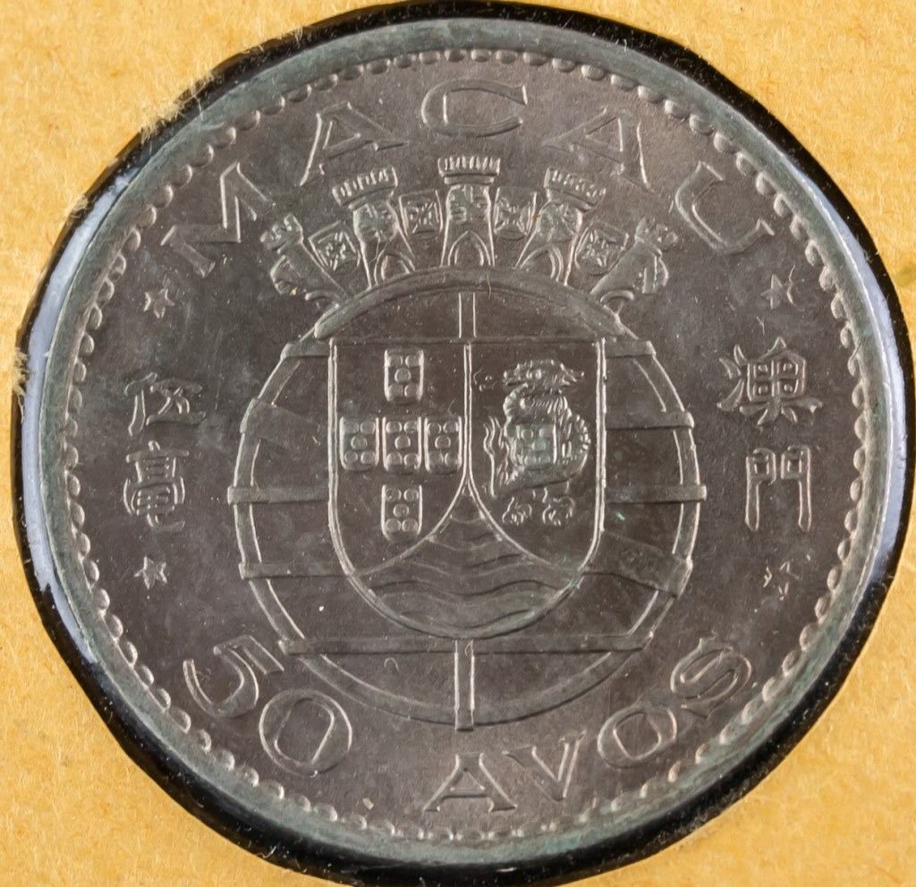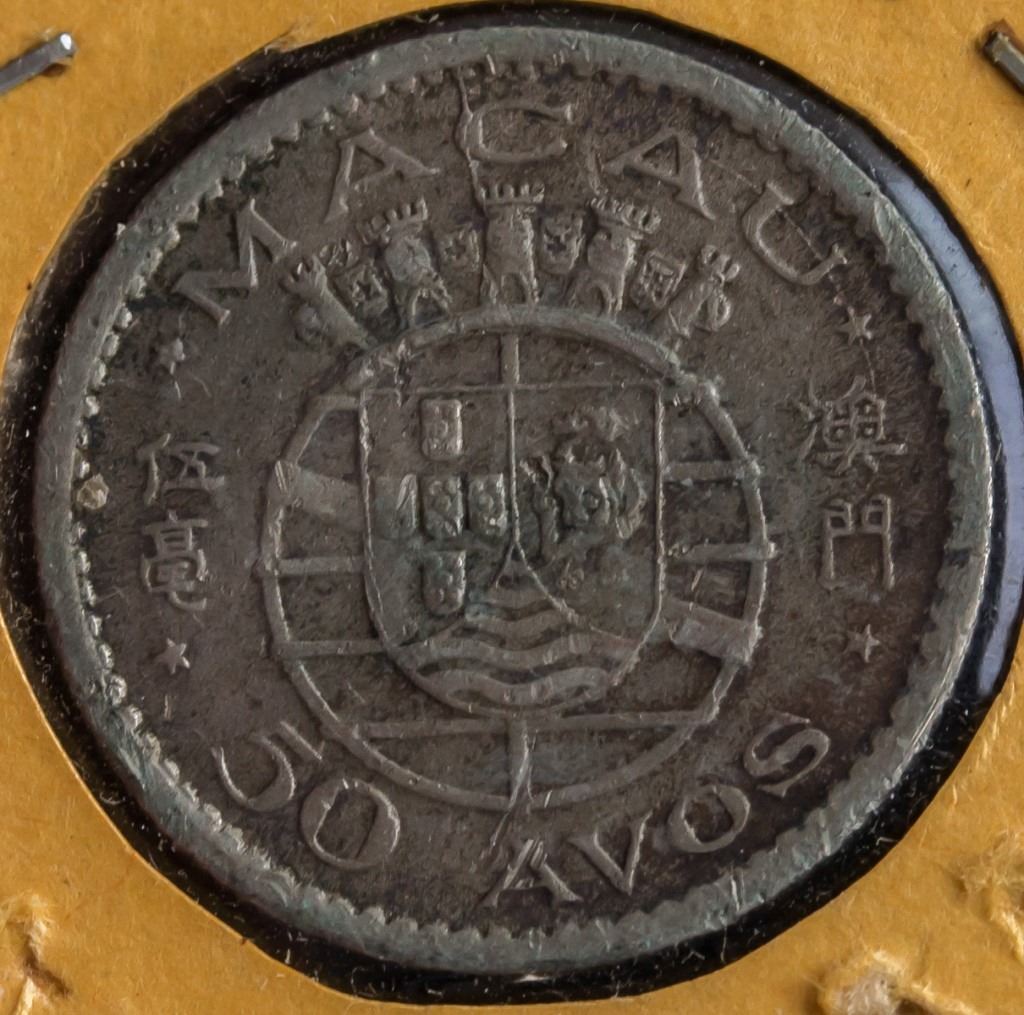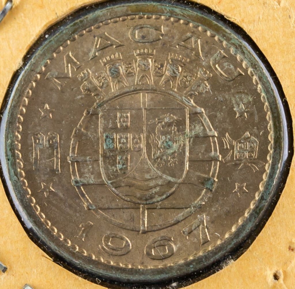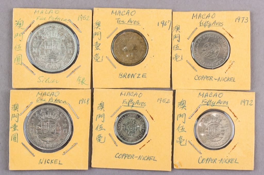 Lot of 6 Macao coins. From 1952, 1967, 1968, 1972, and 1973. Of different denominations. Diameter: 3.5 cm. 58 grams (total).