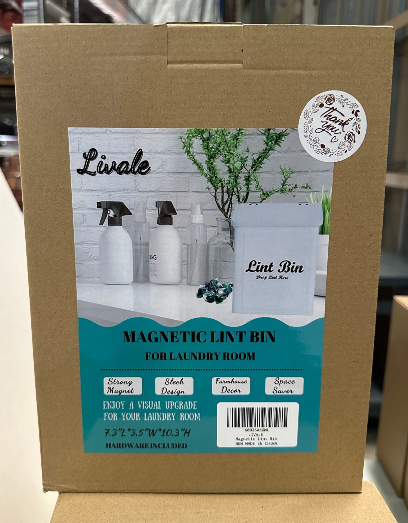 Lot of 6 Magnetic Lint Bin for Laundry Room - Metal Lint Box with Lid for Laundry Room Lint Trash Ca