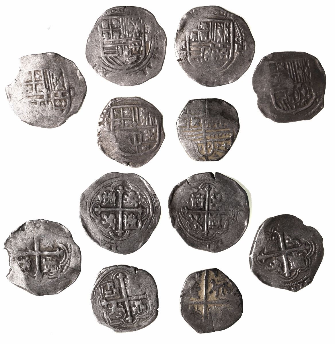 Lot of 6 Mexico City, Mexico, cob 2 reales, Philip II-IV, assayers F and not visible, including one