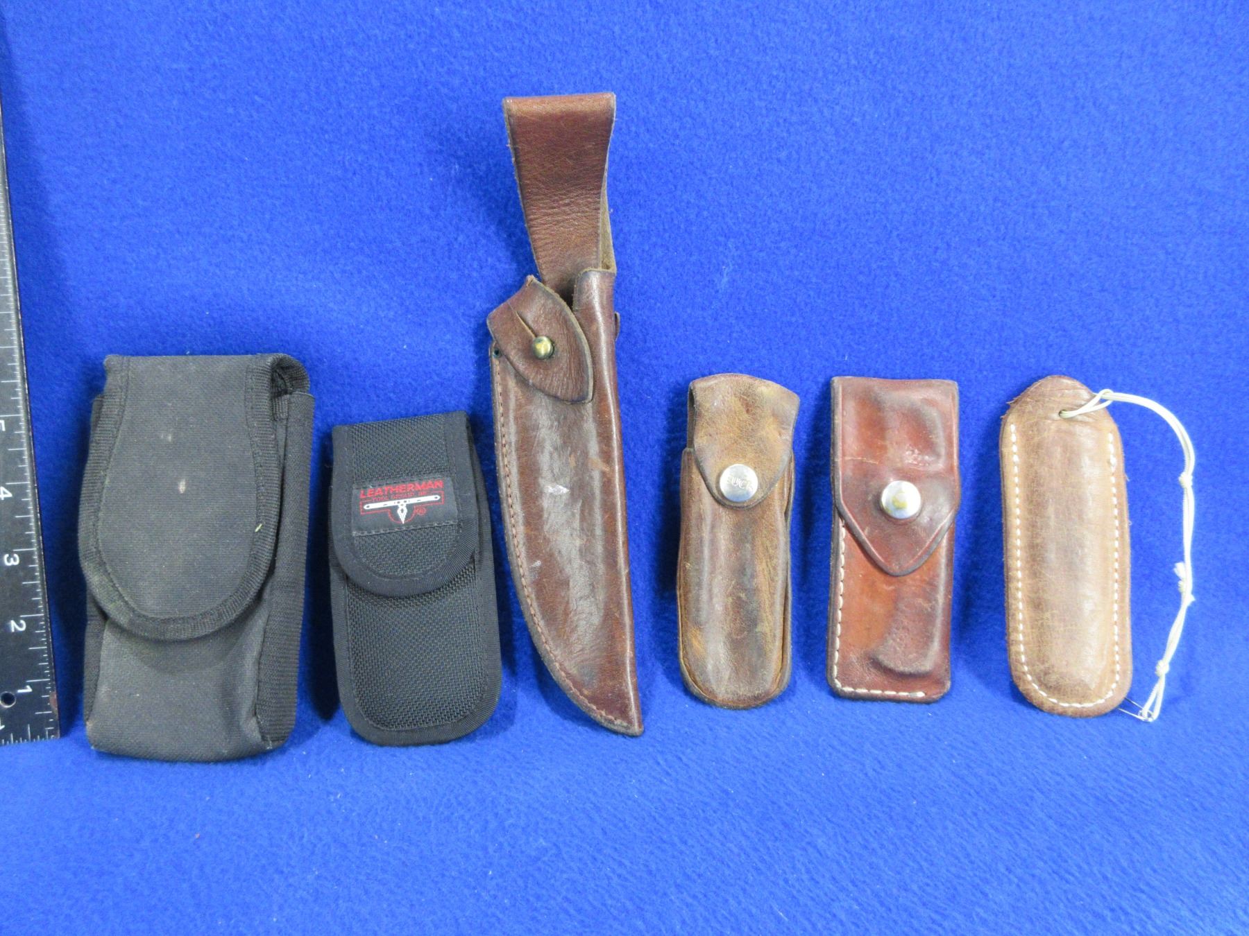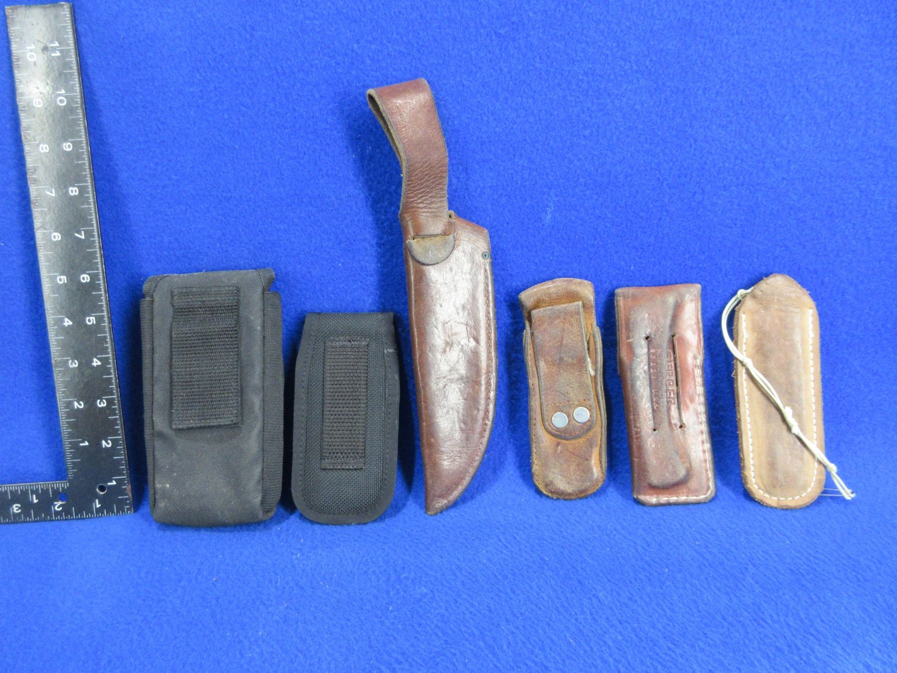 Lot of 6 Misc. Sheaths - 4 Leather, 2 Fabric