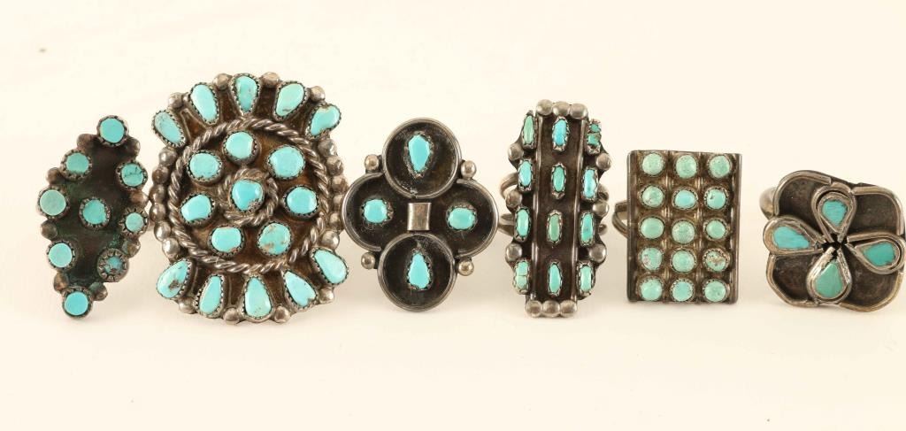 Different clusters of turquoise in rectangular, diamond and floral patterns.