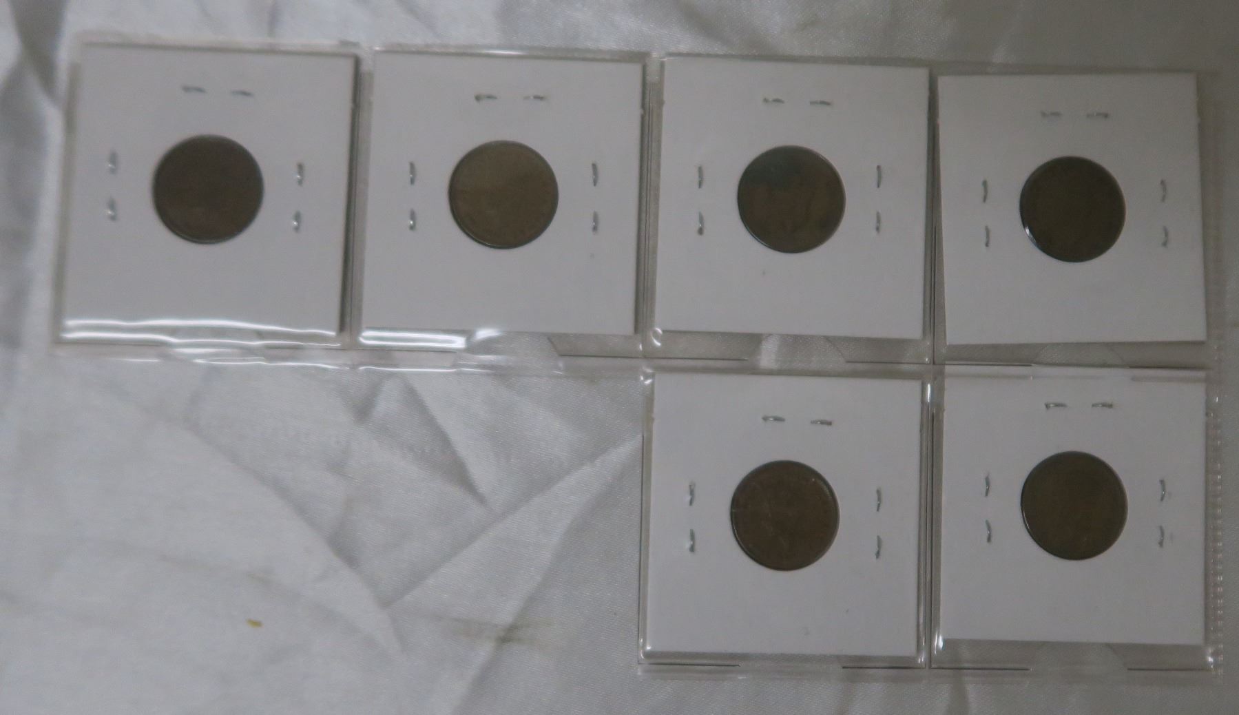 Lot of 6 Newfoundland Small Cents. Includes 1938, 1940, 1941c, 1942, 1943c & 1947c. Coins grade VF-2