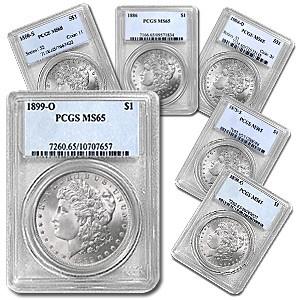 A lot of 6 random common date PCGS MS 65 Morgans- Please review the bidding and payment procedure. Your bid is a contract and promise to pay within our parameters. We offer easy payment options, with a self click payment applet. We also accept checks, money order andbank transfer. Payment is due within 5 days of invoice. We conduct our auctions pursuant to all Governmental, State , County and City laws and codes. We are members of the NAA and use the professional code of ethics for our sales. Weexpect you to honor your purchase and bids. All of our lots are US Asset Forfeiture & Seizures Acquisitions. Fresh to the market items, non auction circuit merchandise. Investment opportunity- Please view our website for futuresales, buy it now items, feedback, questions, weekly tidbits on collecting, to consign or just to learn a bit about us. Visit us at www.afsauctions.us - <img src="http://www.afsauctions.us/images/gavel_e0.gif