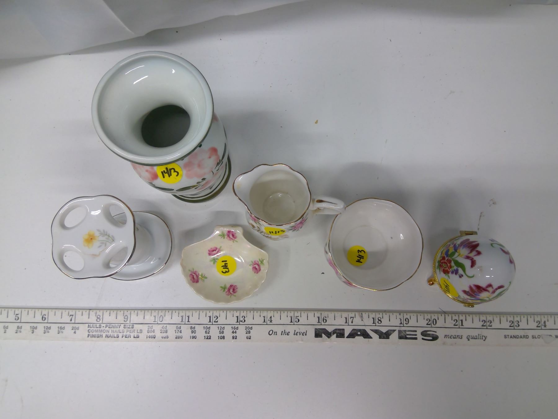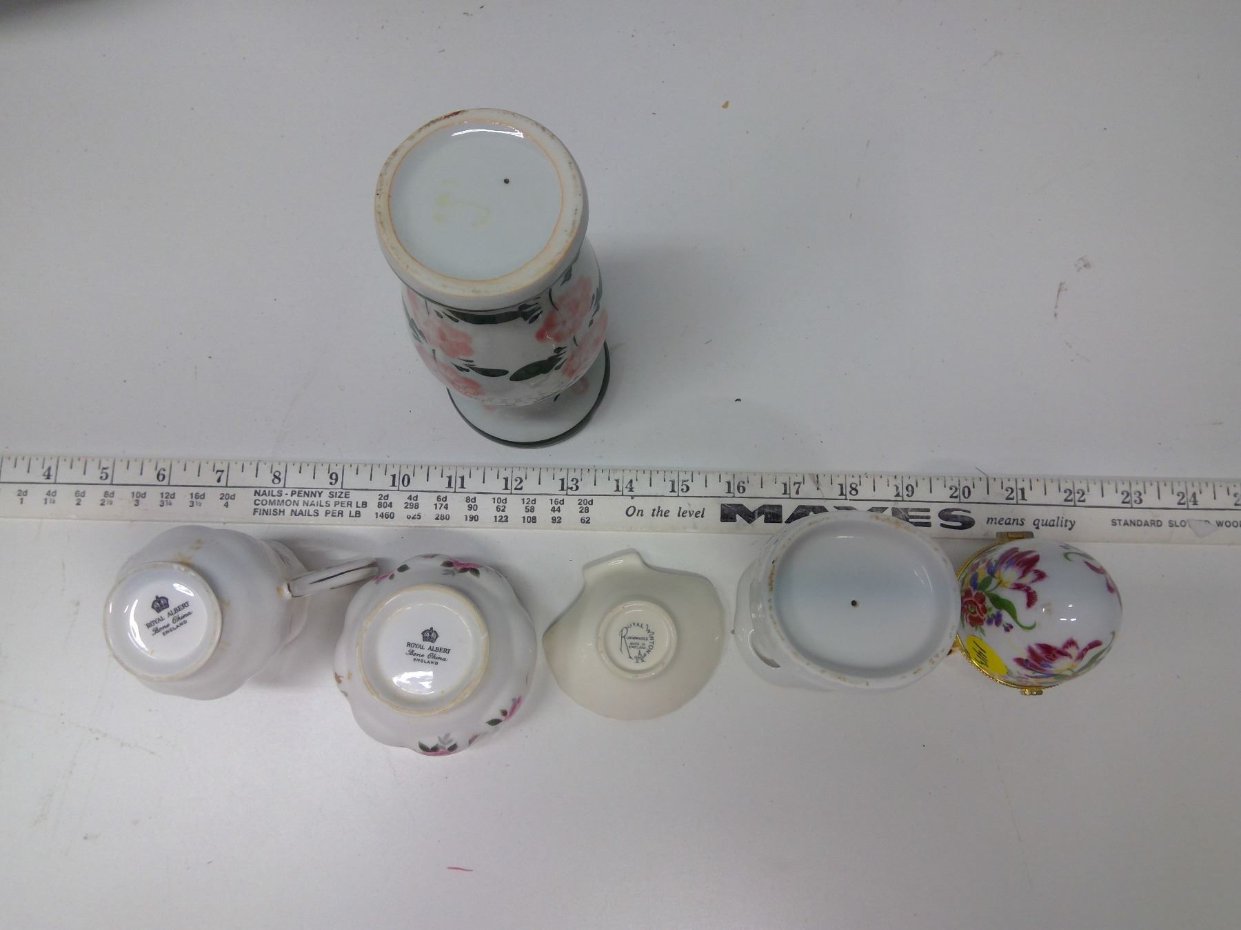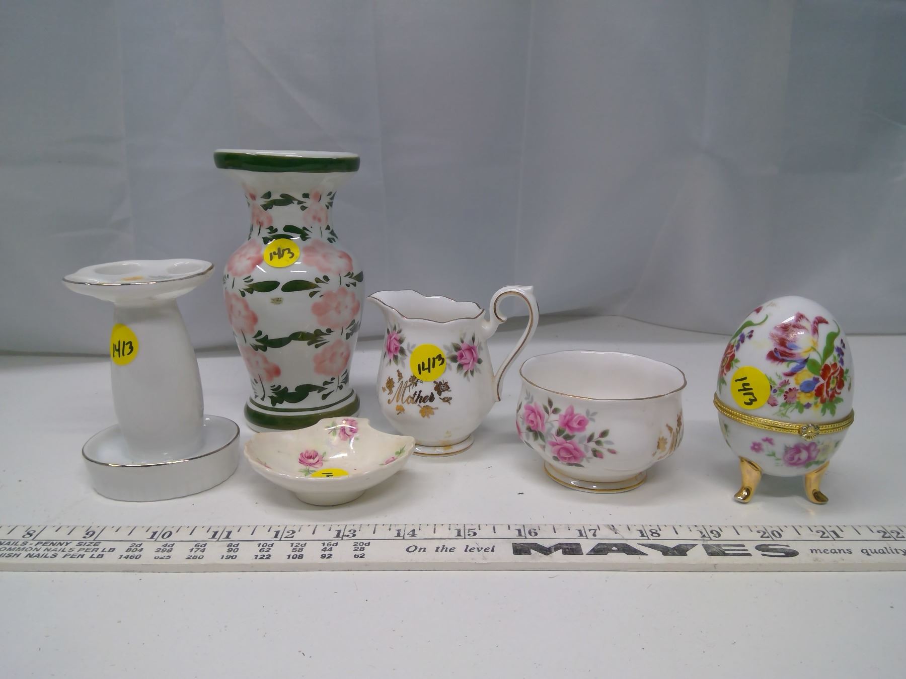 Lot of 6 Pieces of Chinaware - Vase, Egg Holder, Creamer and Sugar Container, etc. (Some Royal Albert)