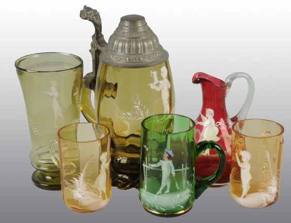 Description Includes one stein, one cruet, one vase, and three mugs. Condition (Excellent). Size Largest: 8" T.