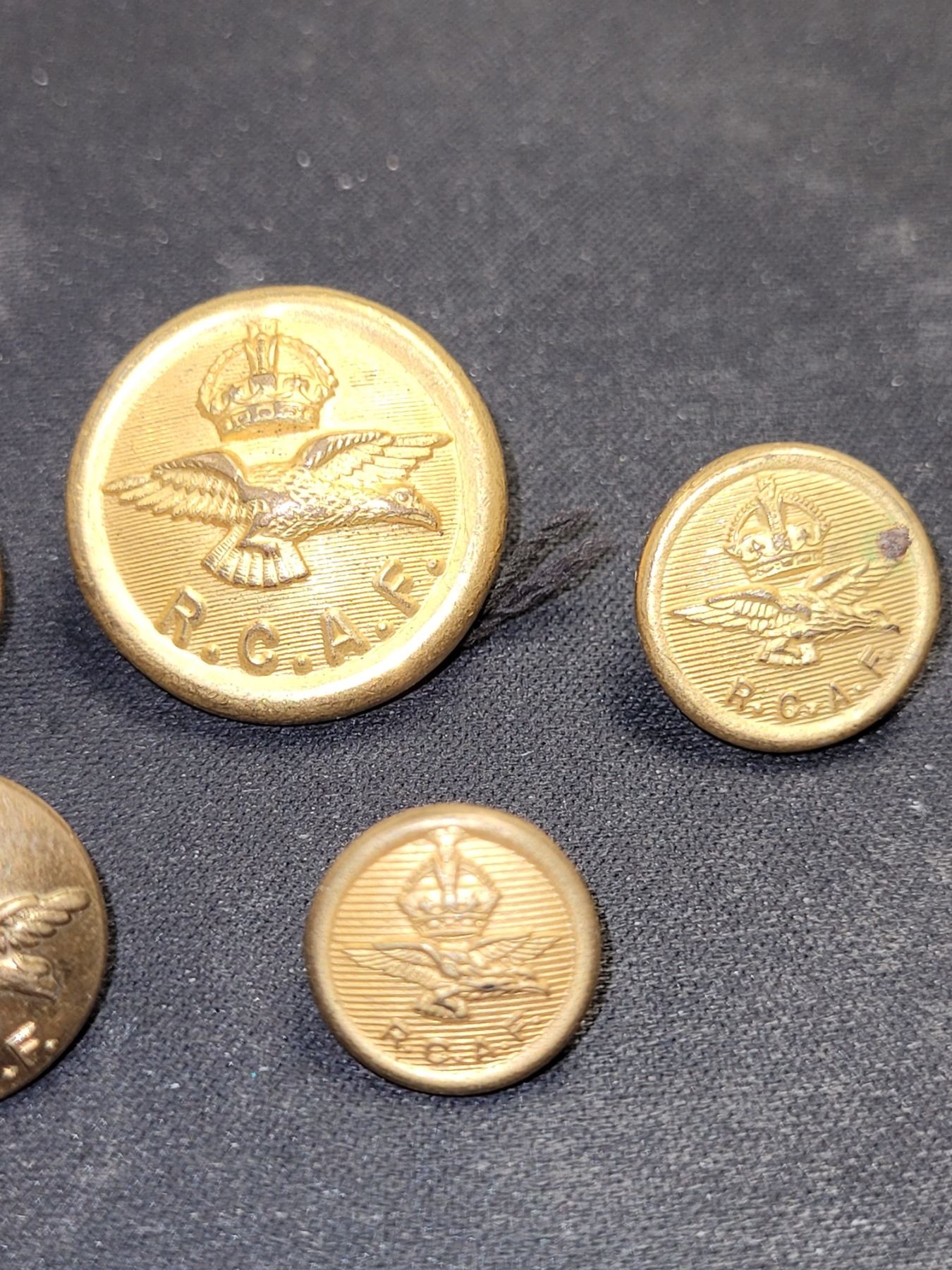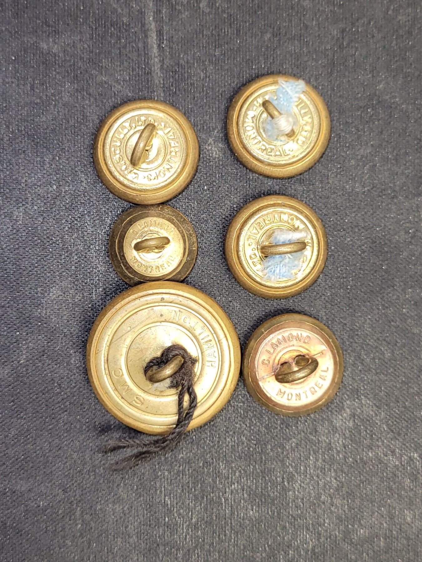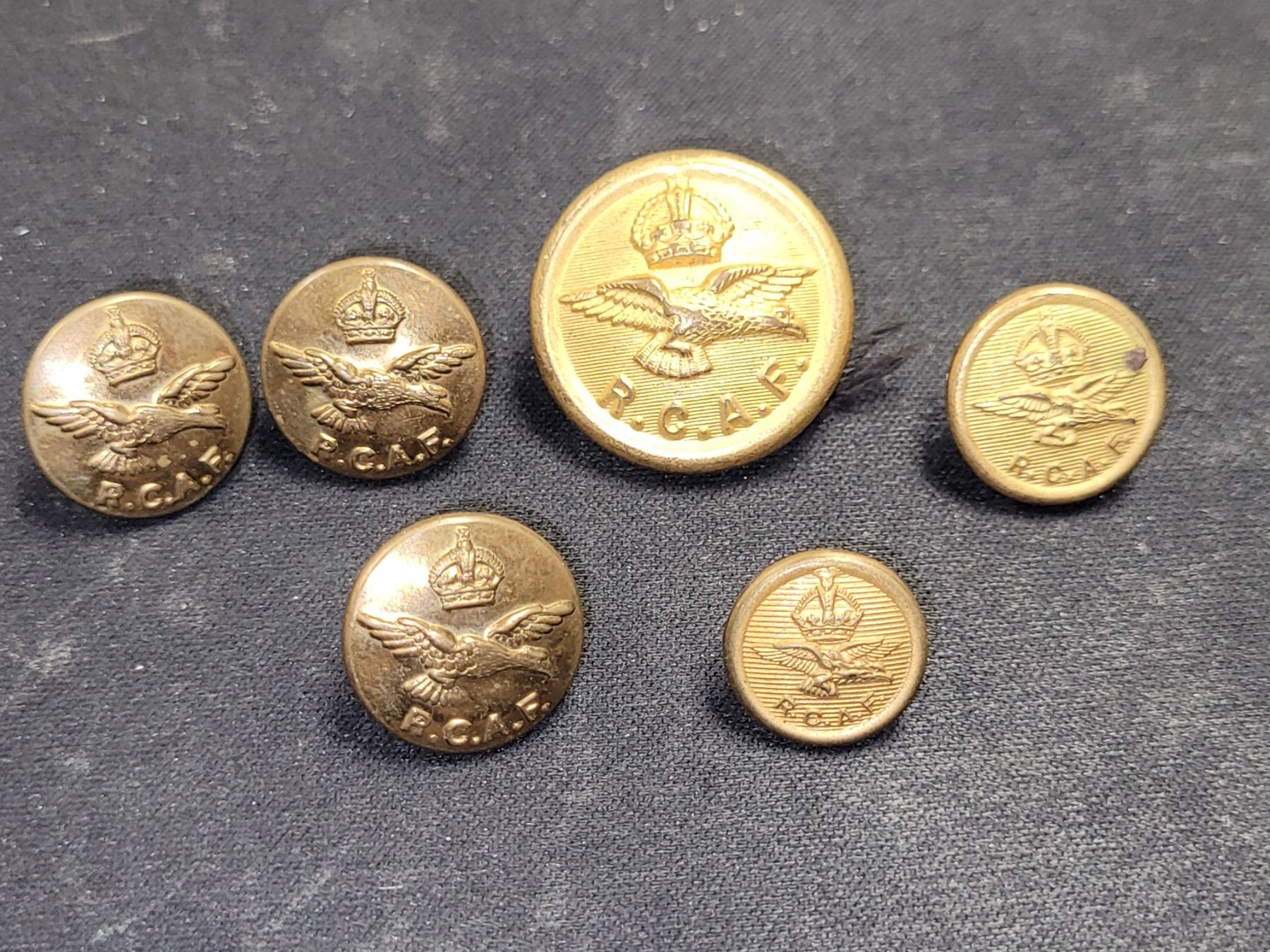 Lot of 6 Royal Canadian Air Force King Crowns Brass Officer's Buttons (3 diffrent sizes) (Large one made in Hamilton, other 4 in Montreal)
