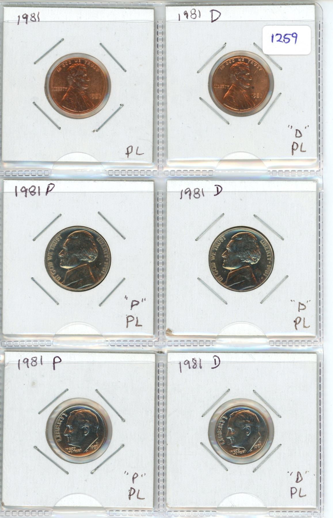 Lot of 6 U.S. 1981 Cents, Nickels & Dimes. Includes both P & D Mint Marks. BU.