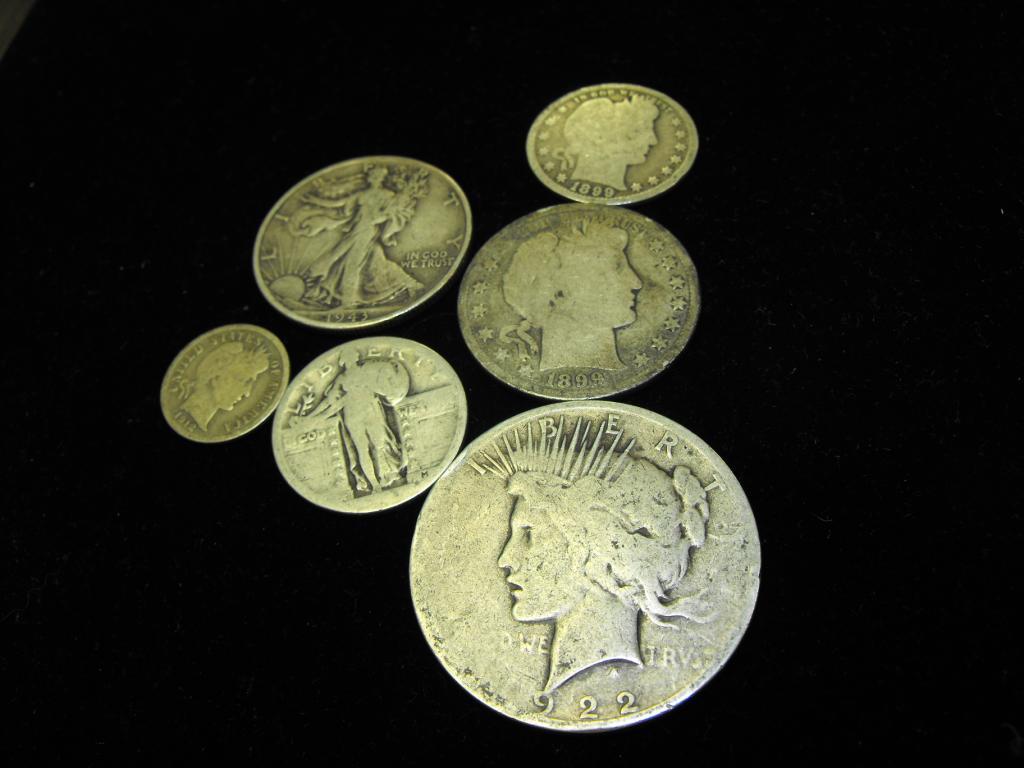 Peace Dollar-Barber Half-Barber Quarter- Barber Dime-Standing Liberty Quarter- Walking Liberty Half- Random Dates from larger collection- Picture is representative of what TYPE coin you will receive. Date will vary
