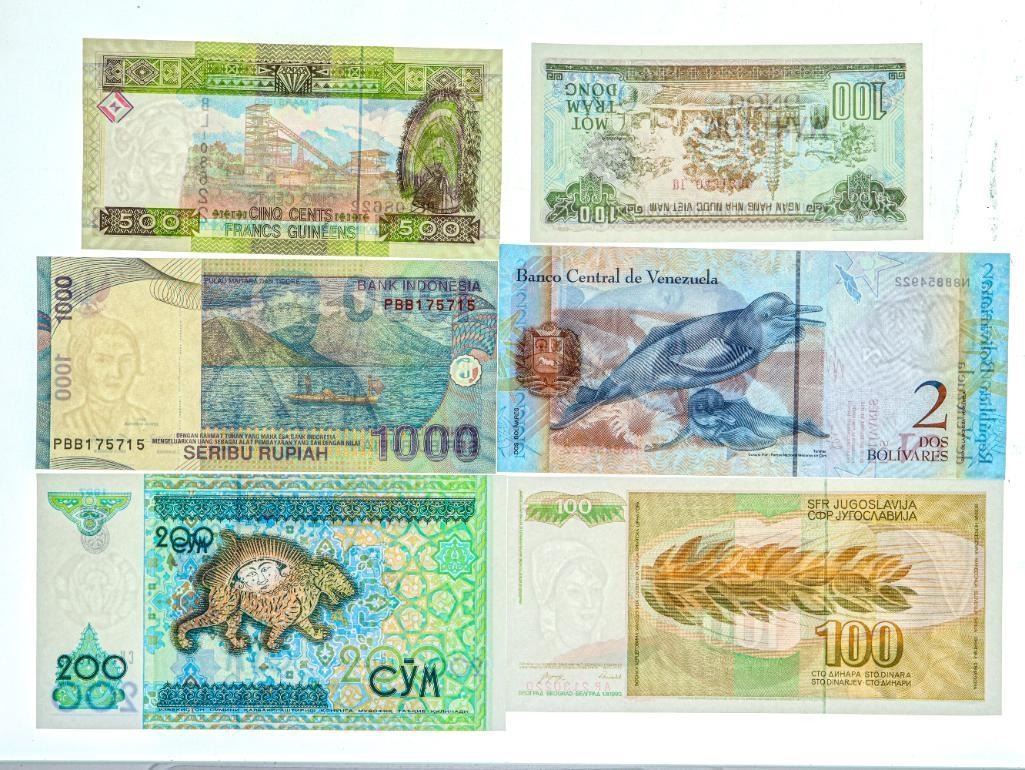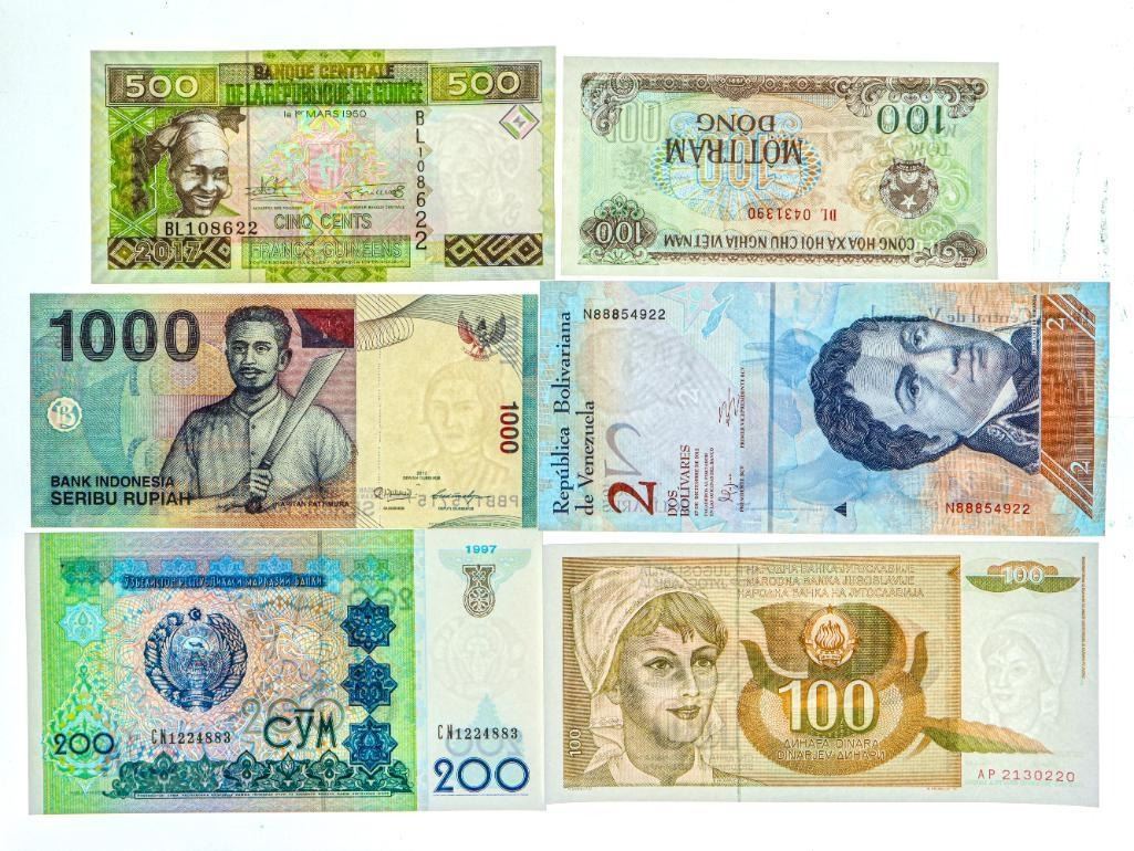 Lot of (6) Uncirculated UNC world countries Excellent Addition to Currency Collectior