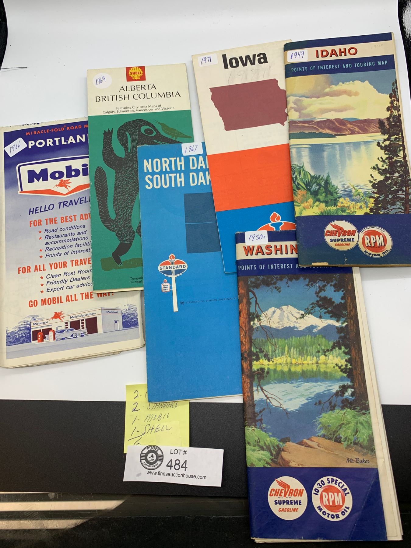 Lot of 6 Vintage Roadmaps Chevron Standard Oil, Shell and Mobil
