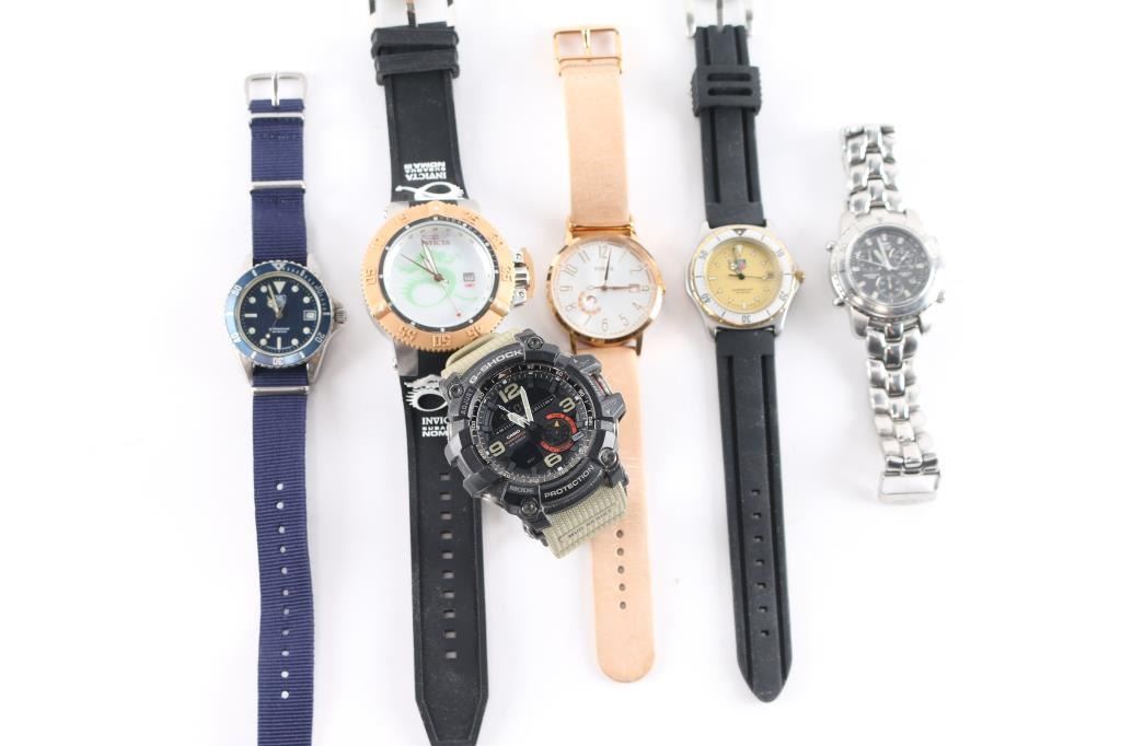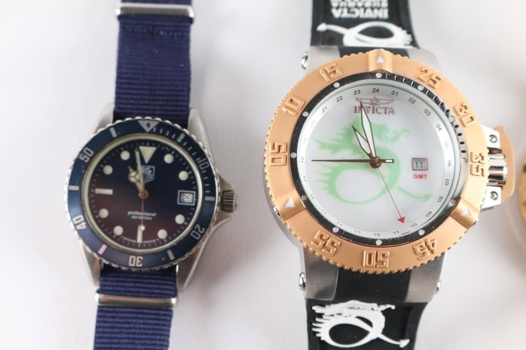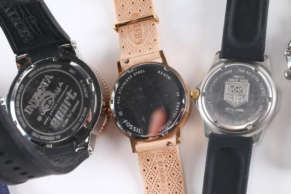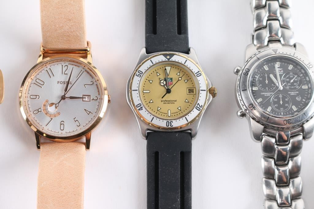 Includes: TAG Heuer 10000, TAG Heuer 2000, Invicta Subaqua Noma III, Casio G-Shock Mudmaster, Sector Chronograph, and Fossil ES3651.