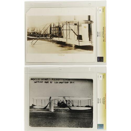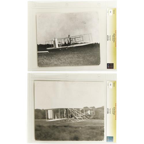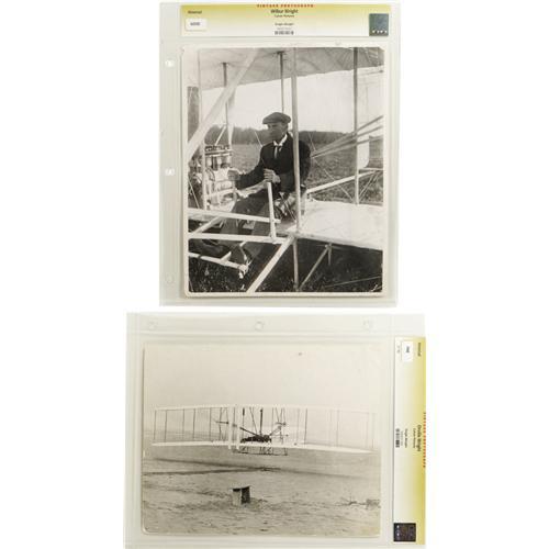 <B>Wright Flyer Photographs From the Culver Picture Service Archive.</B></I> A group of six black-and-white prints measuring 8" x 10" of Wilbur Wright and the <I>Wright Flyer.</B></I> The photographs provide good views of the <I>Wright Flyer</B></I> in flight and at rest. The photograph of Wilbur Wright at the controls of the aircraft clearly shows the intricate details of the fabric, struts, and rigging that will provide useful information for researchers and modelers. All photographs have been graded by CGC Vintage Photographs and are encapsulated in protective sleeves. All have been graded as "fine" with the exception of the photograph of Wilbur Wright that has been graded as "good". All photographs were originally from Culver Picture Services, a company that supplied images to newspapers and magazines.<BR><BR><b>Shipping:</b> Small Flat (<a target="_blank" href="http://www.heritageauctions.com/common/shipping.php">view shipping information</a>)