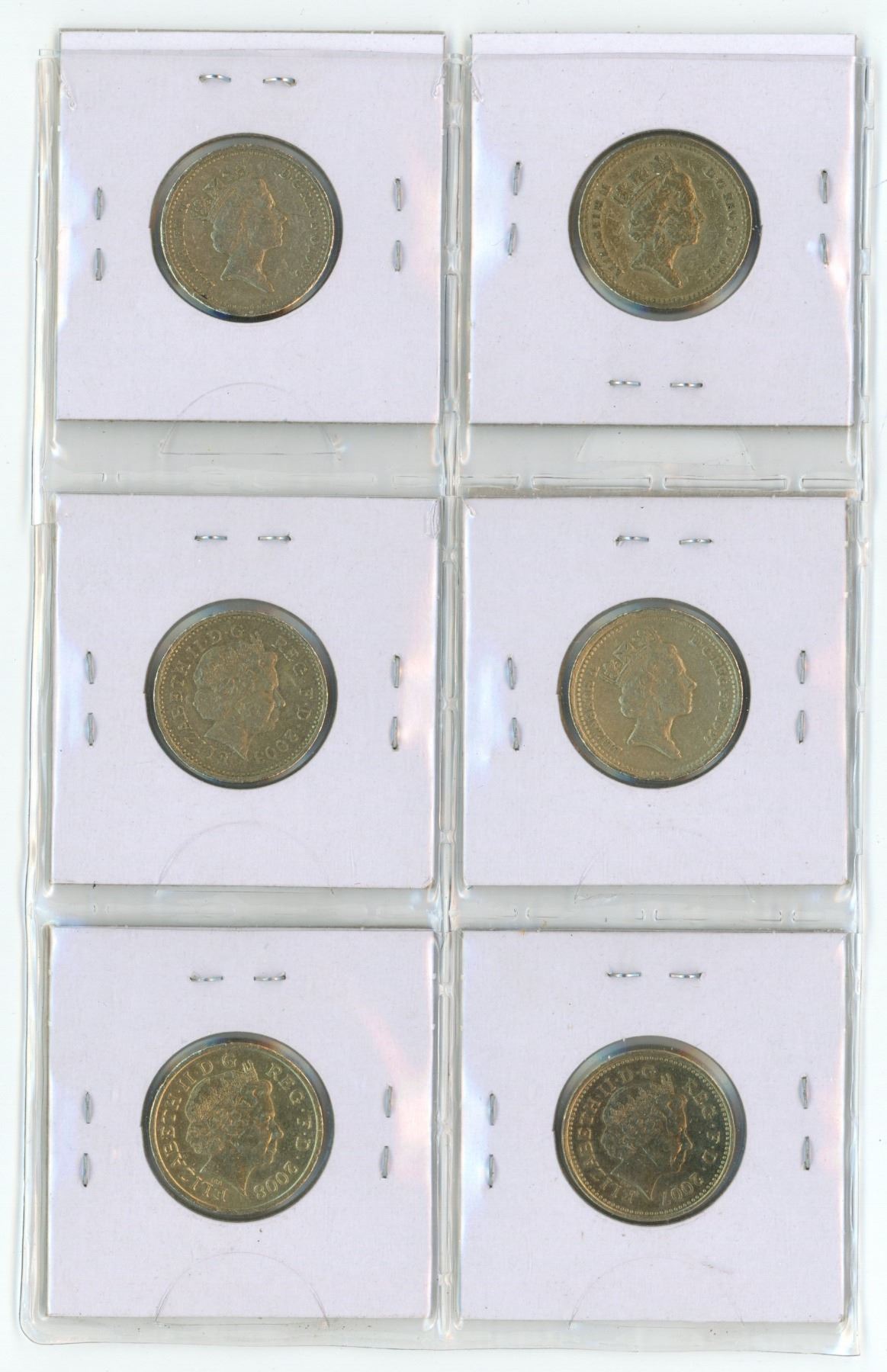 Lot of 6 different Great Britain 1 Pound coins. Includes 1992, 1995, 1997, 2003, 2007 & 2008. All with different reverses.