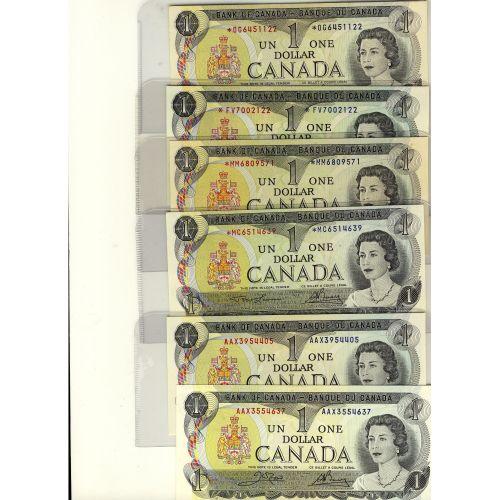 Lot of 6 different "REPLACEMENT" 1973 $1 notes, *M/C, *M/M, *O/G, *F/V, AAX Crow, AAX Lawson. Grades vary from Unc to Gem Unc.