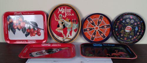 Lot of 6 serving trays 3 "Frank's" 2 Orange Crush & a Major Cola