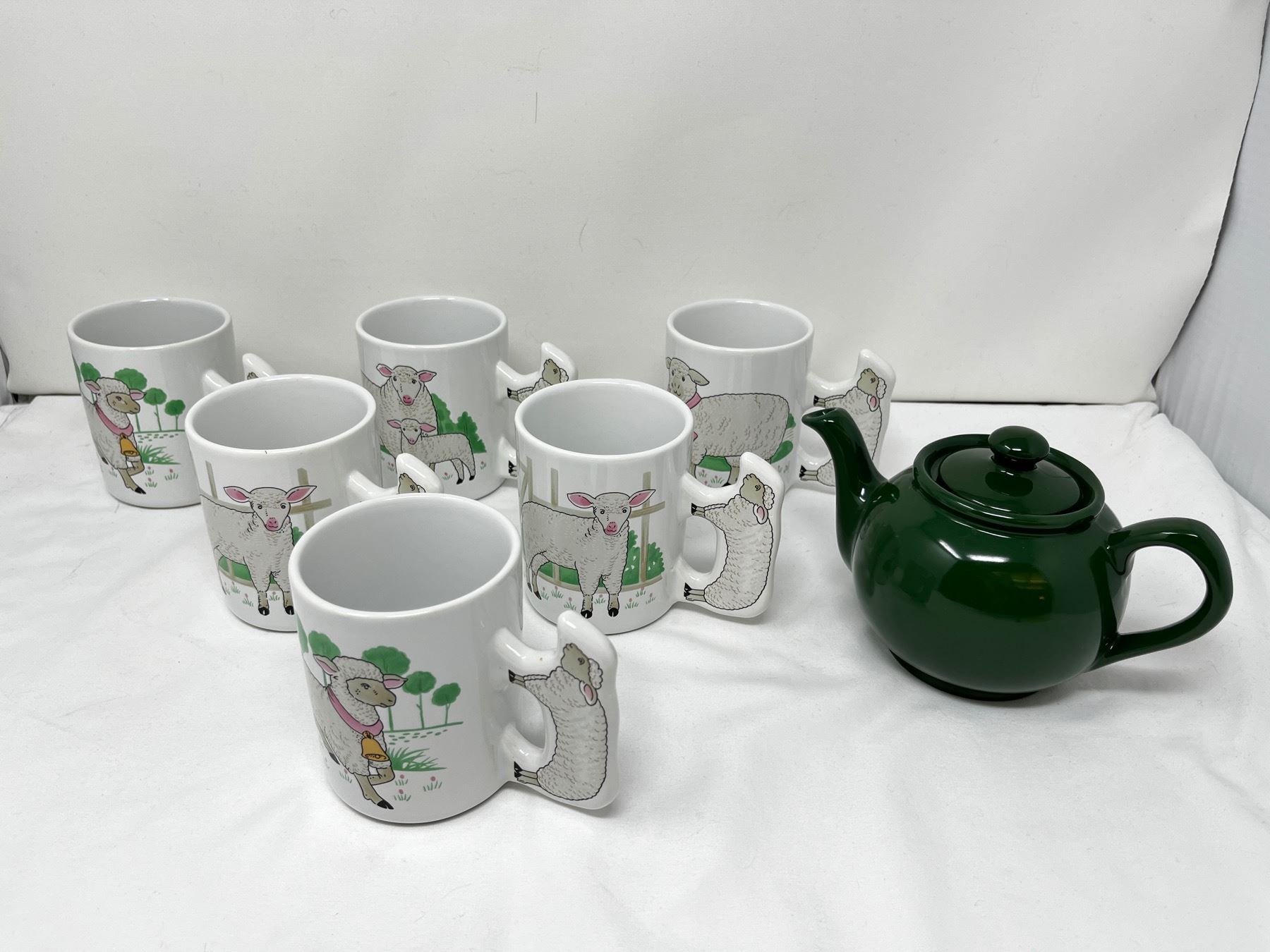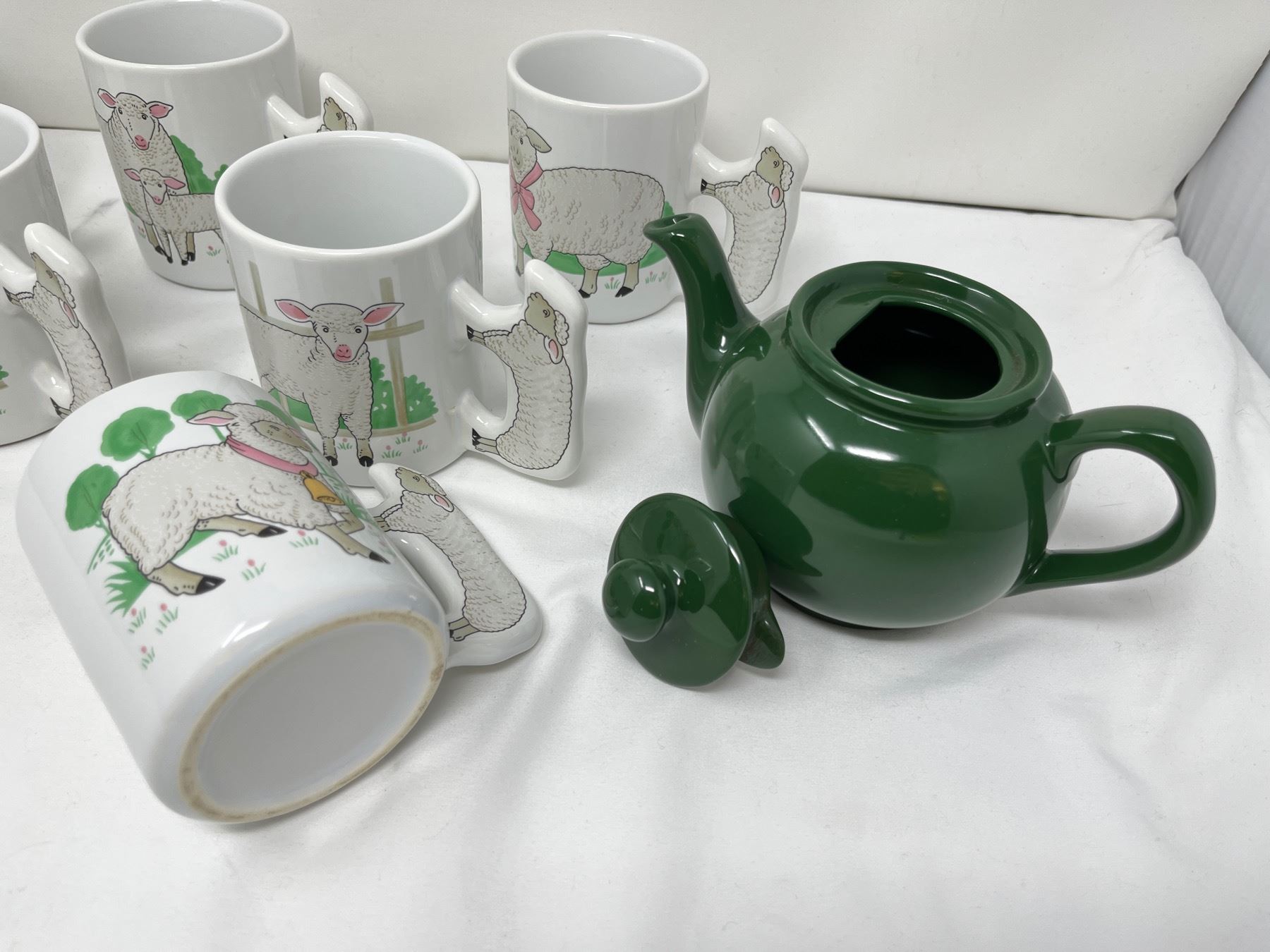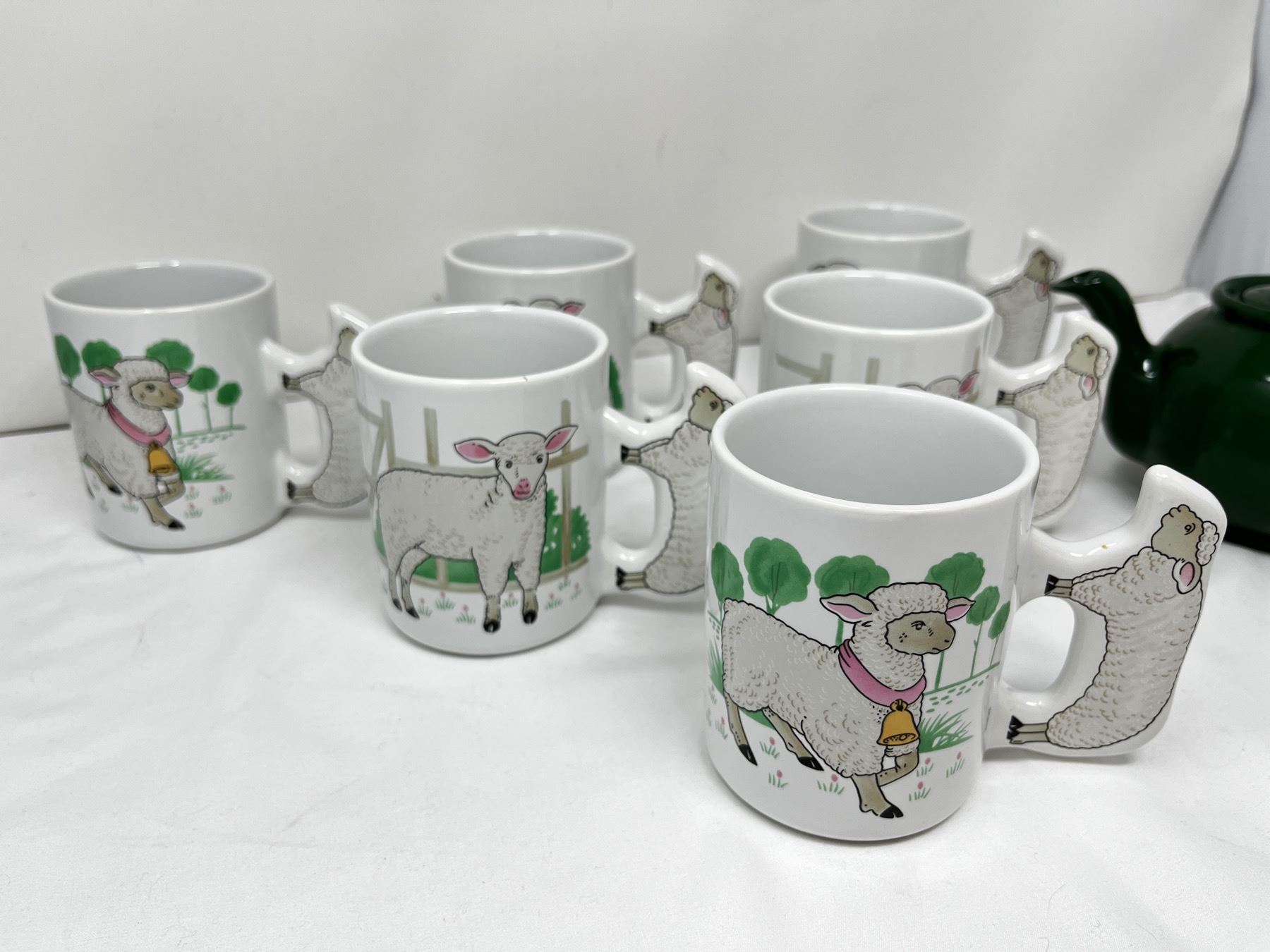 unmatched set, with 6 matching sheep theme coffee cups and tea pot included.