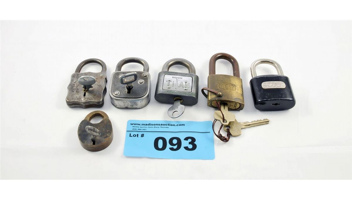 Lot of 6 vintage padlocks - 5 with keys, one has