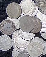 A lot of 60 V nickels- WELL circualted items. Various dates or no date.