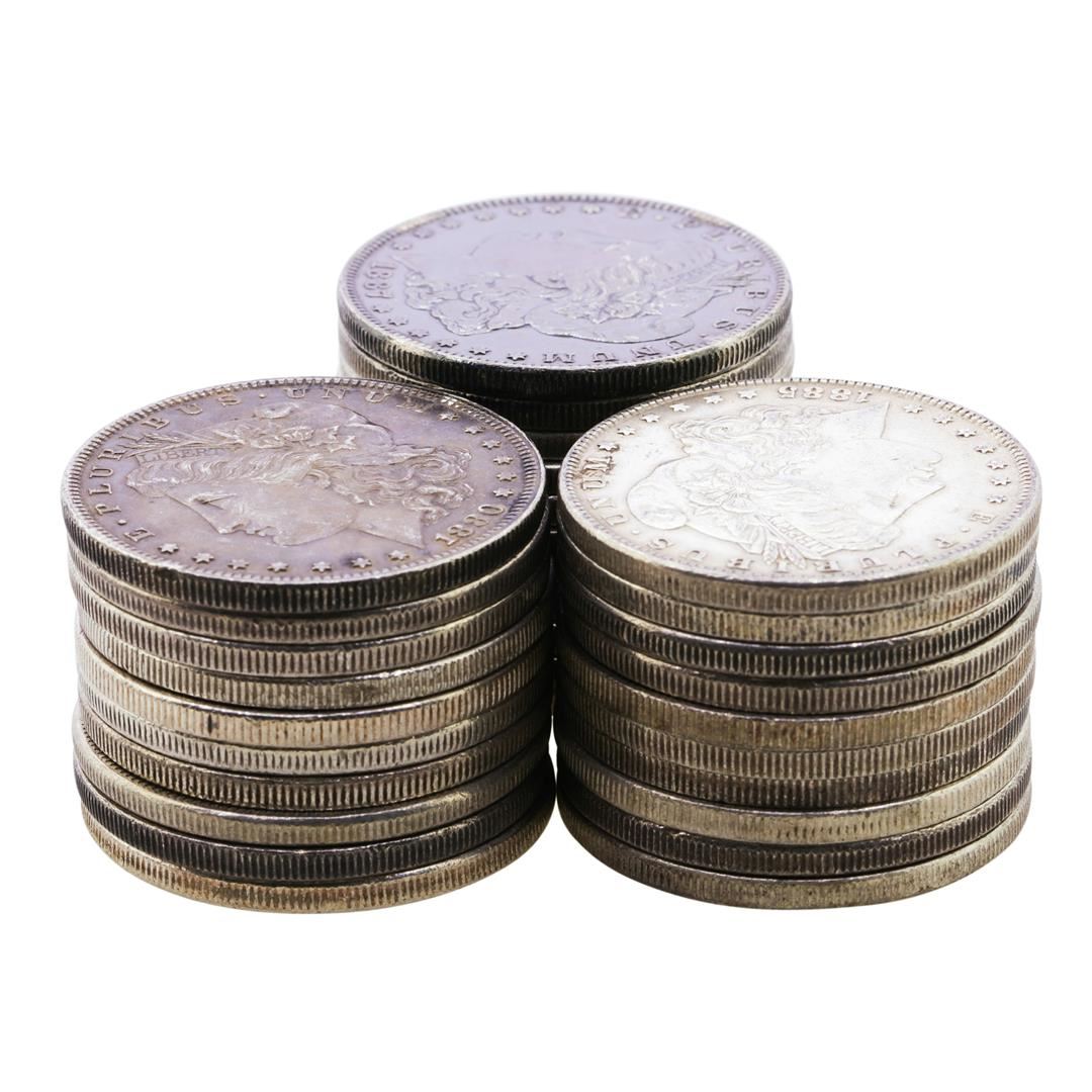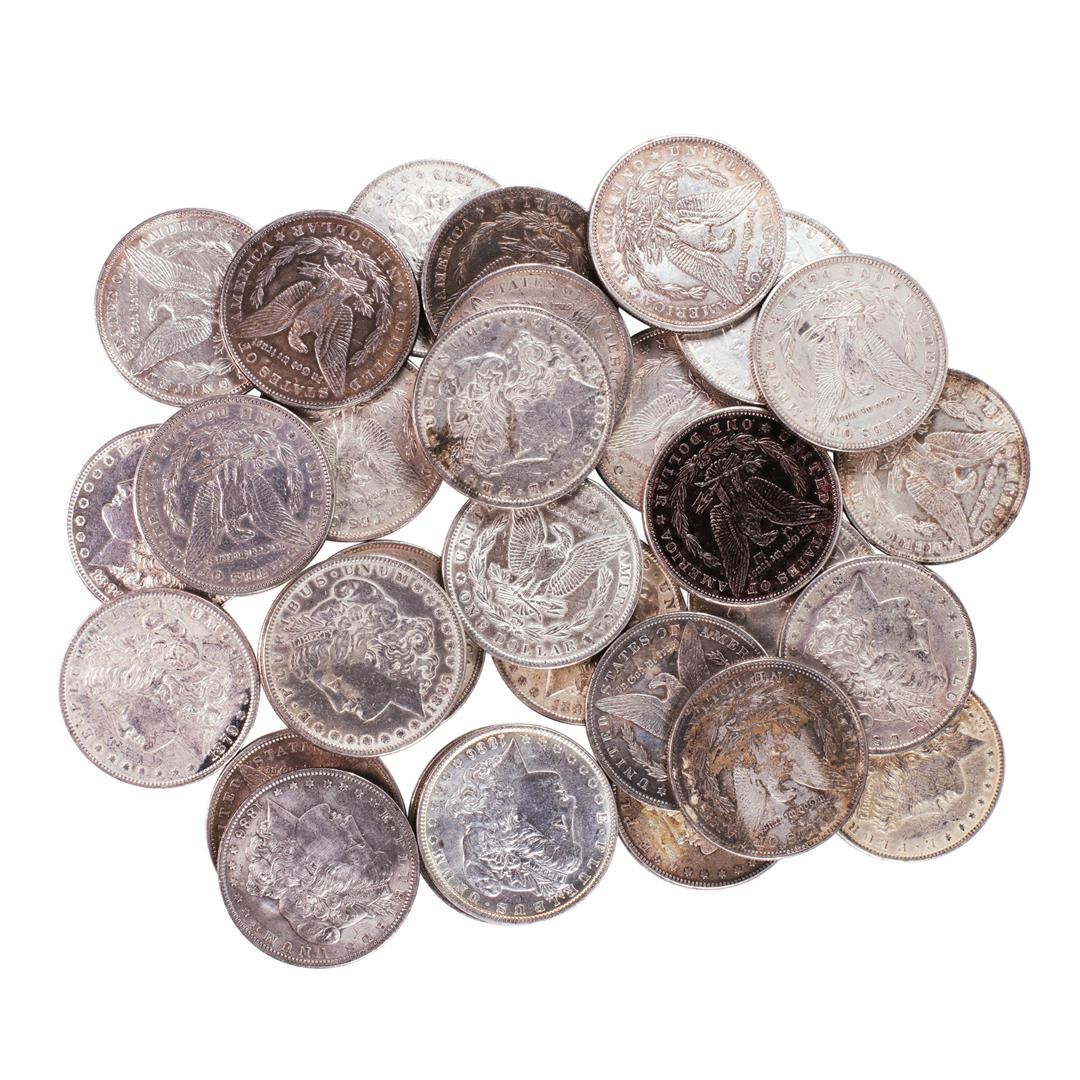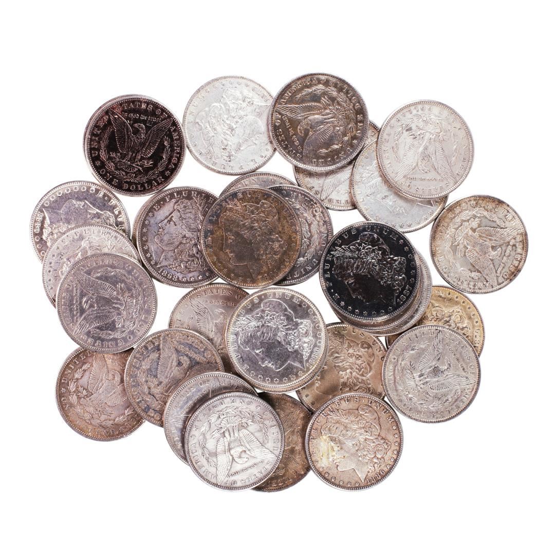 One Lot of (61) Pre-1921 $1 Morgan Silver Dollar Coins. These coins will grade from VF-Uncirculated, some coins may have various details including cleaning, toning, staining, rim dings, etc.
