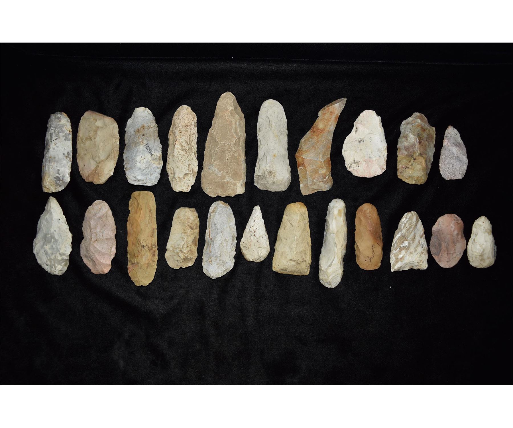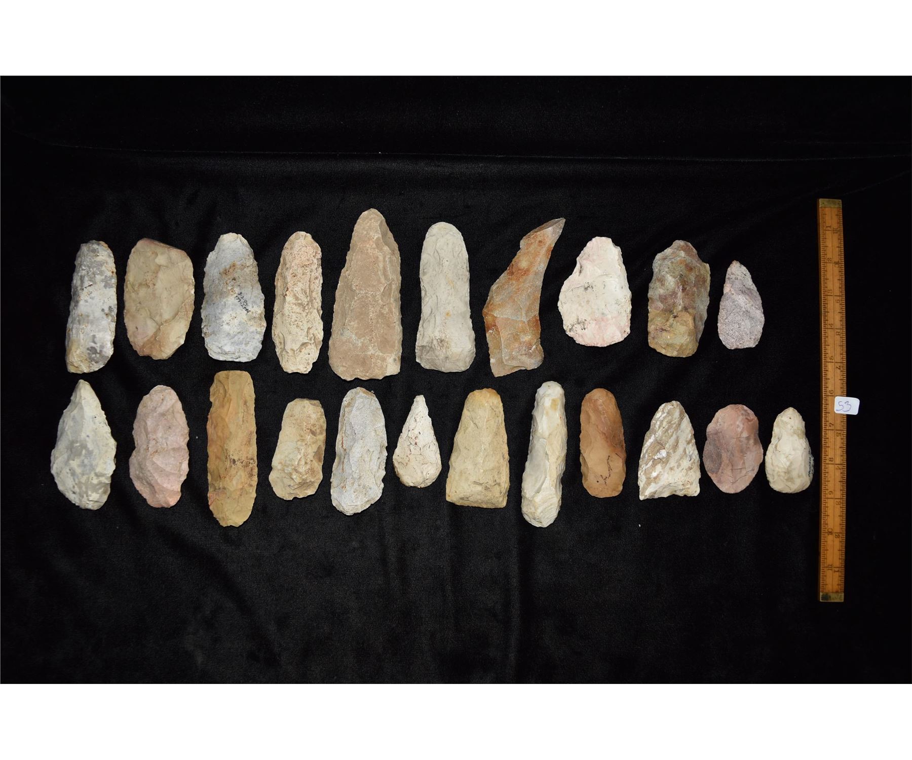 Lot of 64 Flint Pieces and 20 Flint Adze, Bob Zimmerman Collection, St Joseph, Missouri