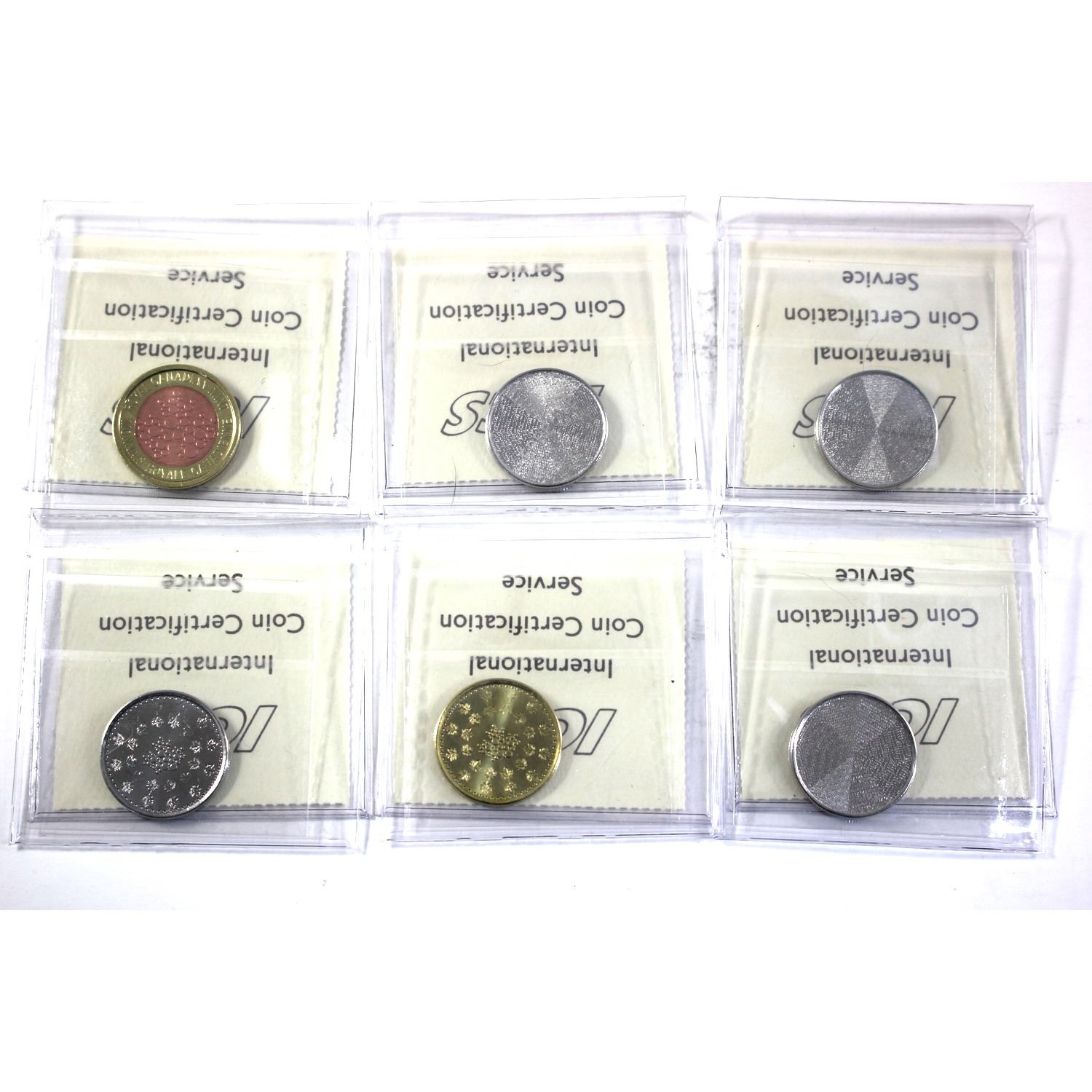 Lot of 6pcs 2018 Canada ND Test Tokens, ICCS Certified, MS-66. Lot Includes: Pie Chart, Leaf 1, Leaf 2, Moose, Caribou, & Tri-Metal. Coins come in ICCS holders. 6pcs.