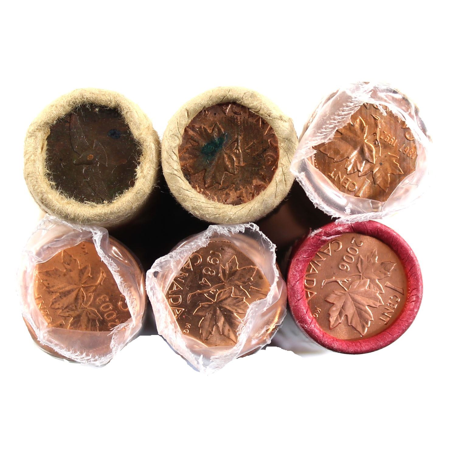 Lot of 6x Original Wrap Canada 1-cent Rolls. Lot includes: 1967, 1977, 1984, 1992, 2003 N.E, 2006 No